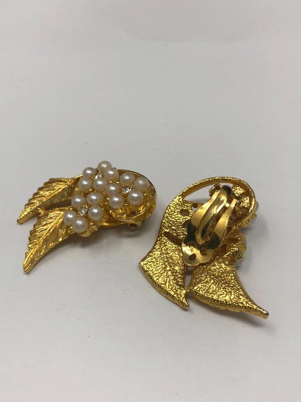 076: Crystal Vintage Necklace, Faux Pearls Strands, Cluster Vintage Earrings