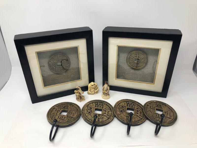 Oriental Framed Art, 4 Decor hooks and 3 miniatures.
