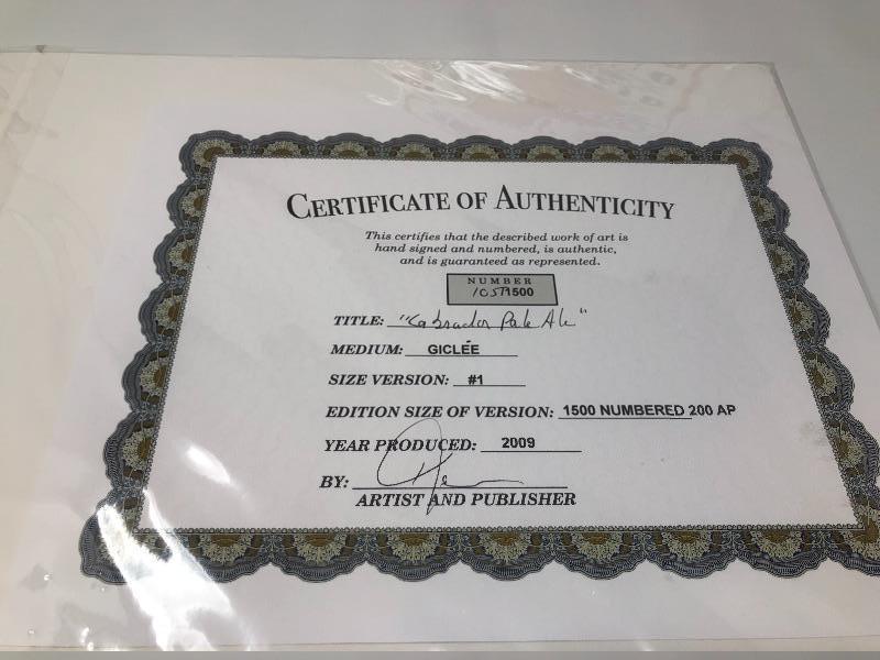 "Ca Brada La Pale Ale: Signed and certificated print 105/1500, Other print unsigned. Star Lantern Hanging with Chord and lightbulb attachment.