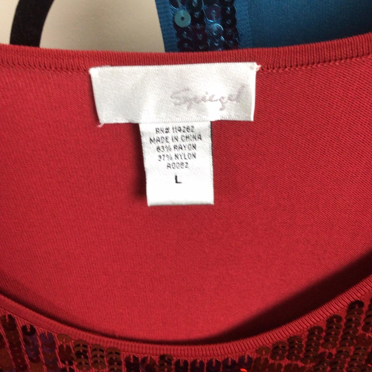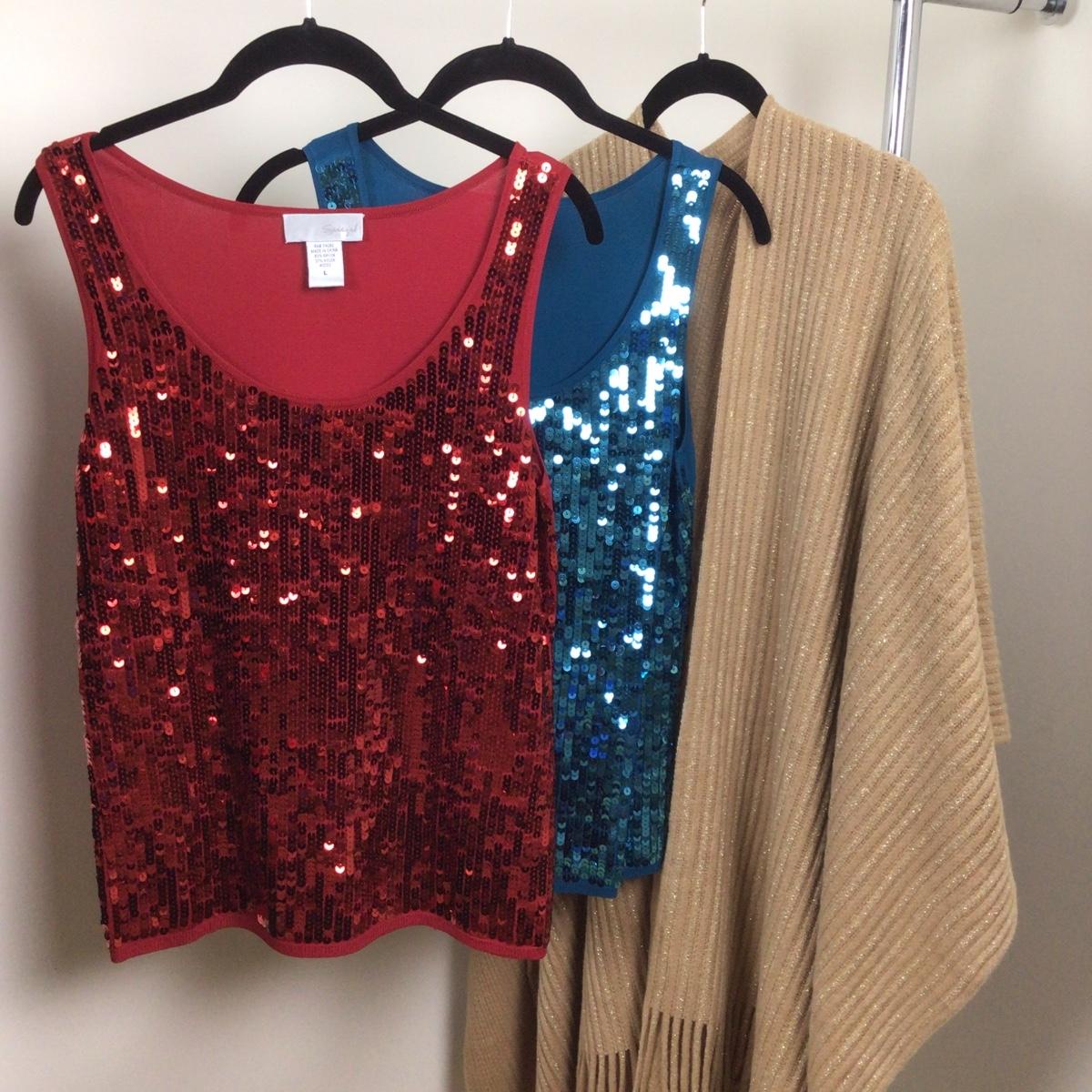 There are 2 sequined tank tops (Large) and a cape (os).