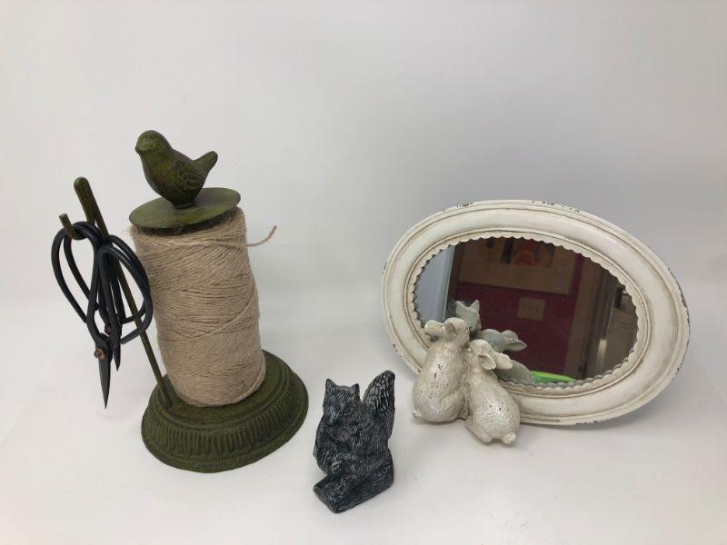 083: Bunnies, Rabbit Mirror, Squirrel and Metal Bird Twine Dispenser with Twine
