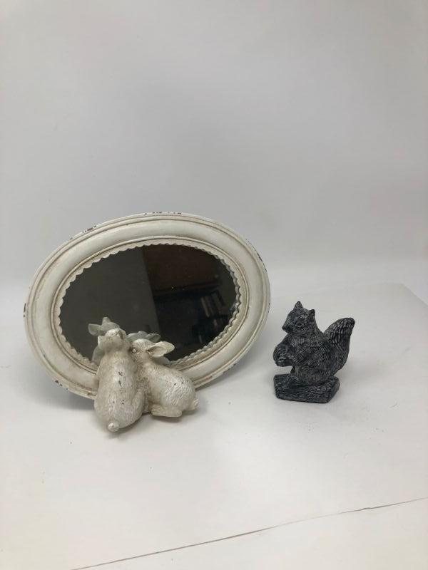 083:  Bunnies, Rabbit Mirror, Squirrel and Metal Bird Twine Dispenser with Twine