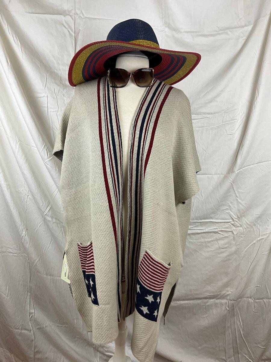 084 Nautical Taupe Knitted Shawl with Sunhat, and Sunglasses