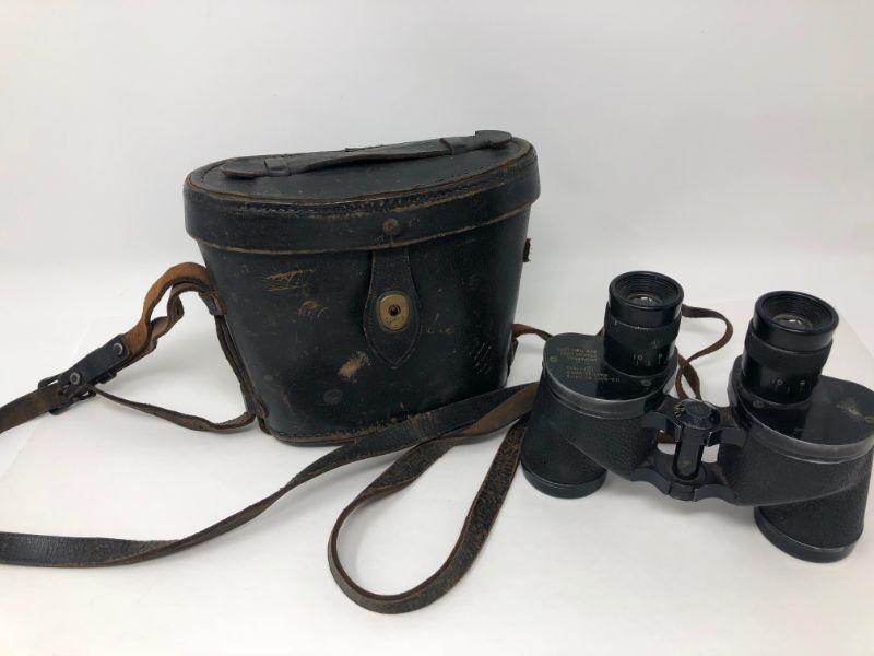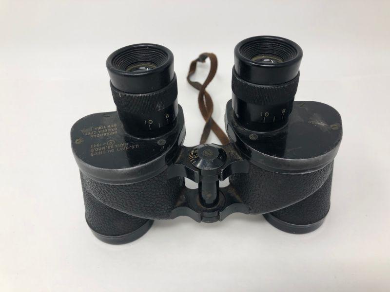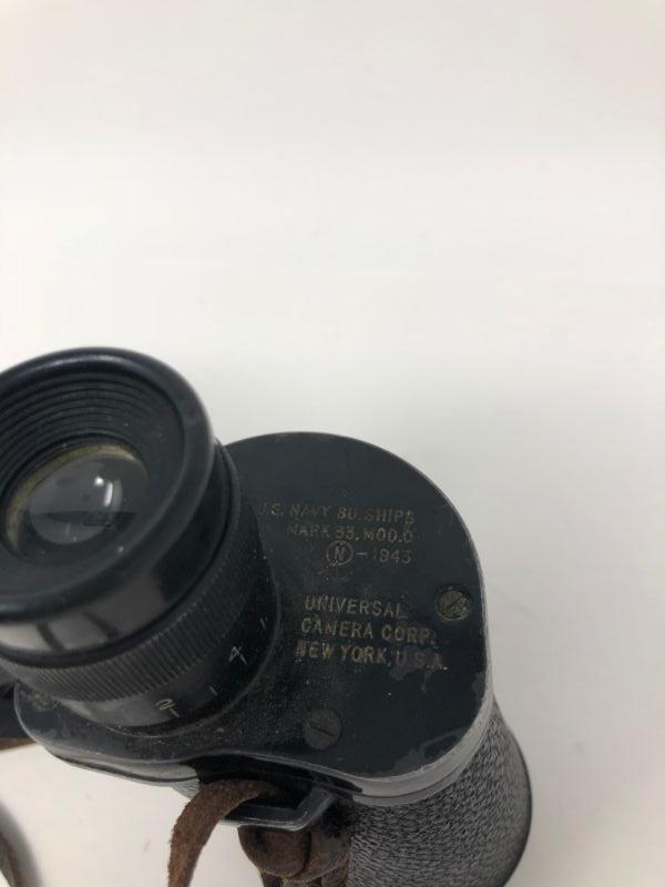 084: U.S. Naval Mark 33 Vintage Binoculars With Leather Case