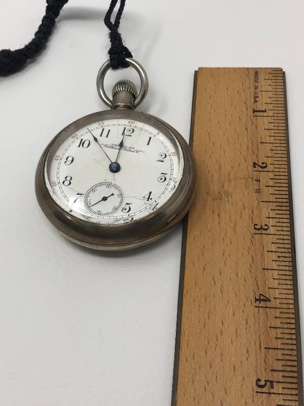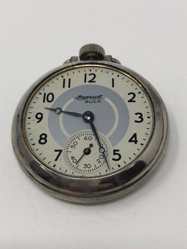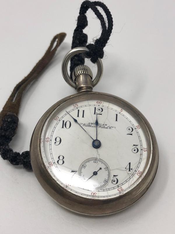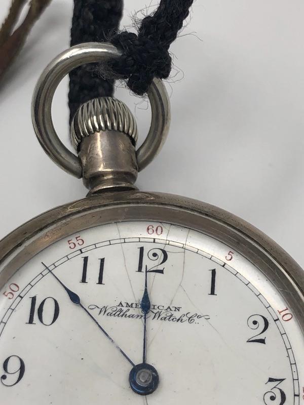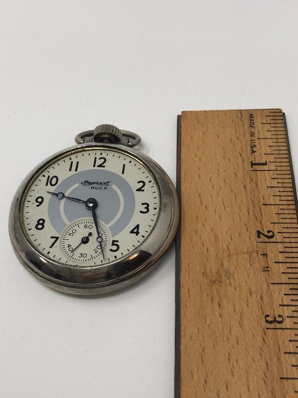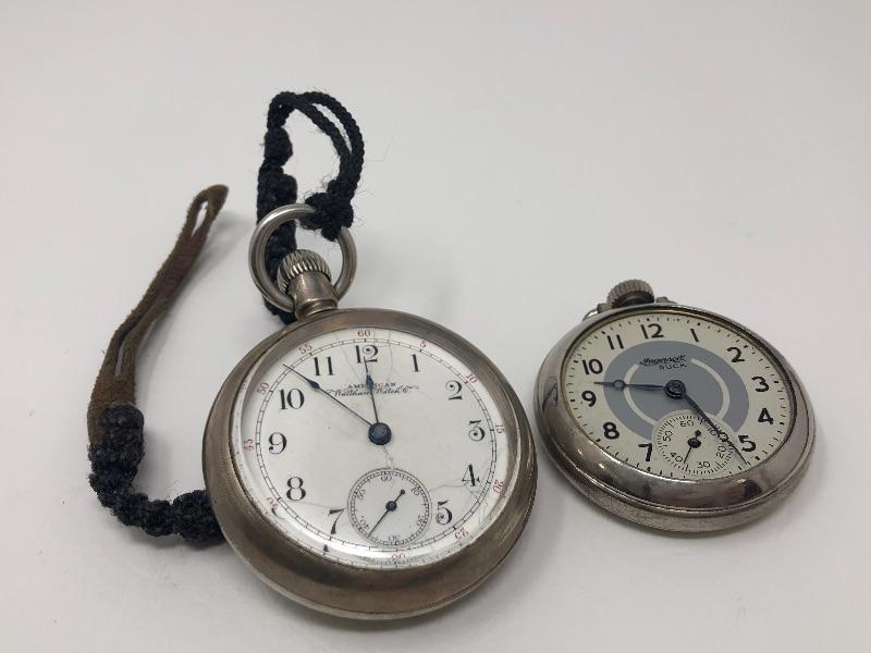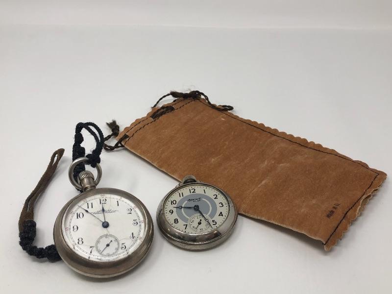AMERICAN WALTHAM sterling Stop watch and Ingersoll Stop Watch. The Ingersoll Stop watch is missing the front glass. Neither were running. The Waltham appears to be sterling silver, no markings were found.