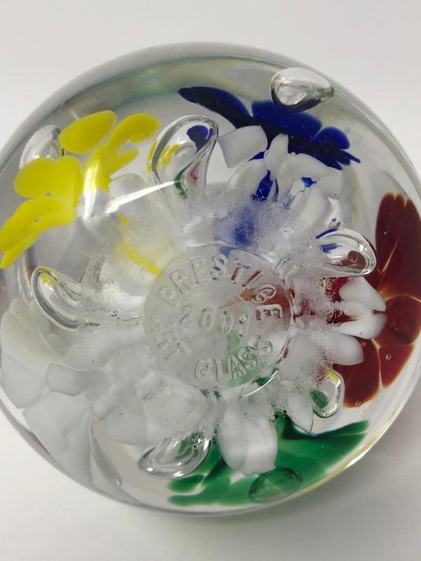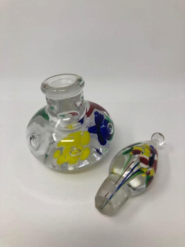 Prestige Art Glass Perfume Bottle Paperweight, floral controlled bubbles
