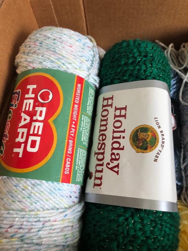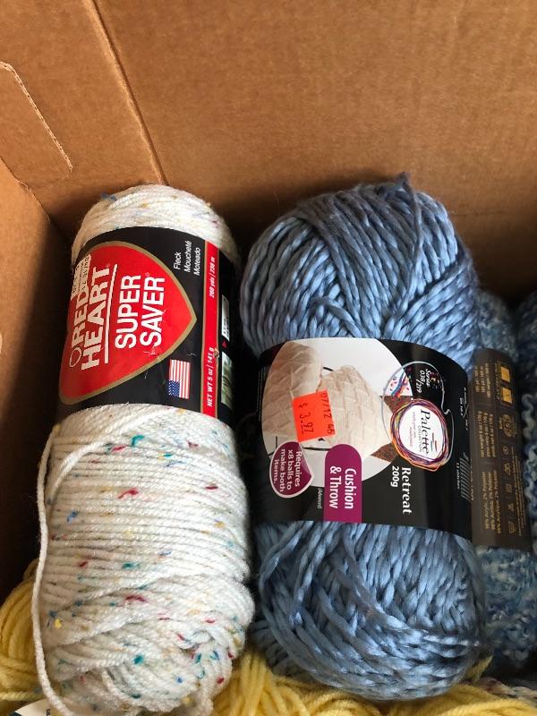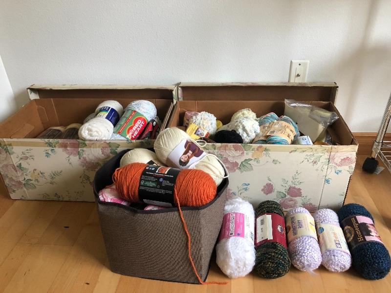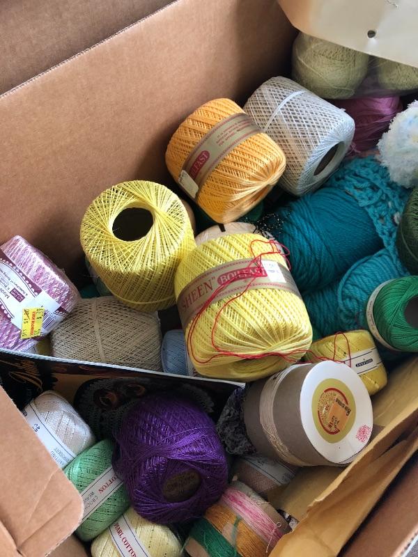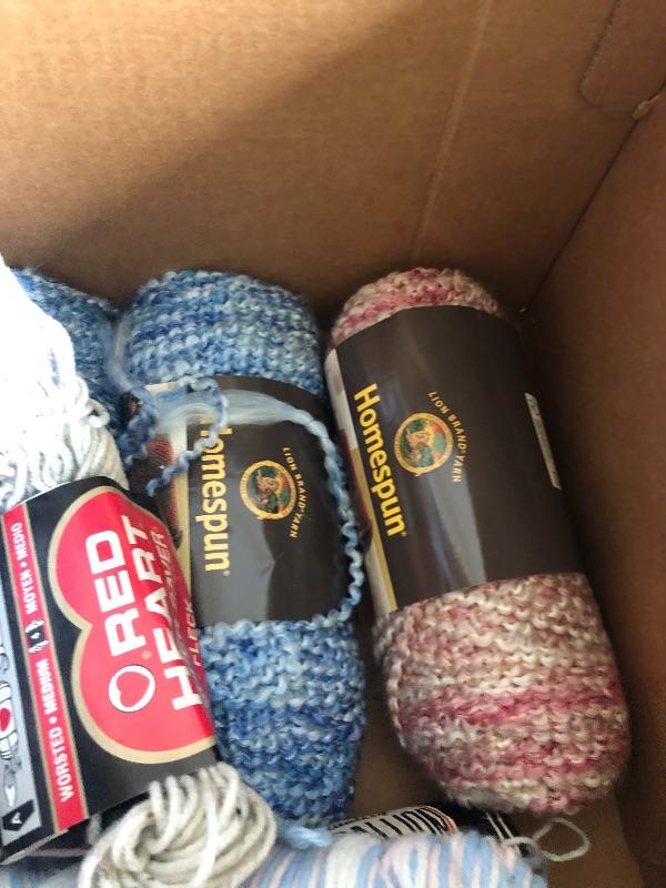 I tried to photograph all the yarn in this lot. Please see pictures. There are two large boxes including a storage bin full.
