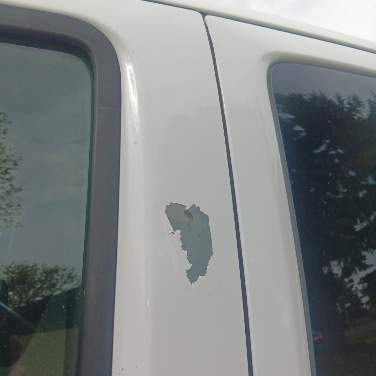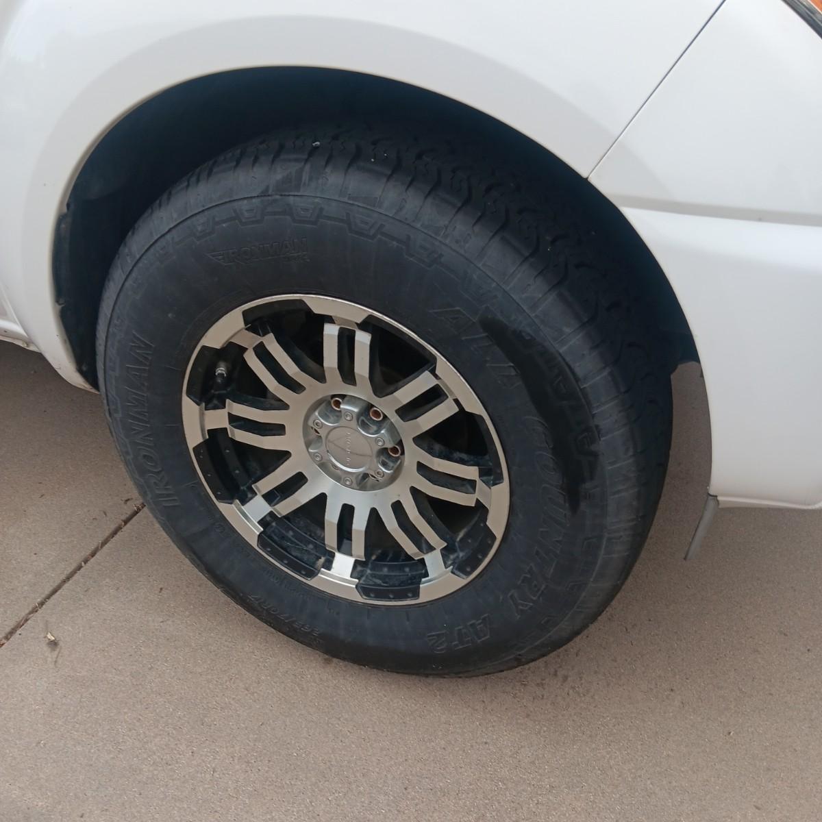 GOOD TIRES WITH PLENTY OF TREAD, THERE IS A PATCH OF PAINT LOSS ON THE HOOD, DRIVER DOOR AND TAILGATE, THERE ARE SCRATCHES ALONG THE TOP OF THE BED WITH SOME RUSTING.