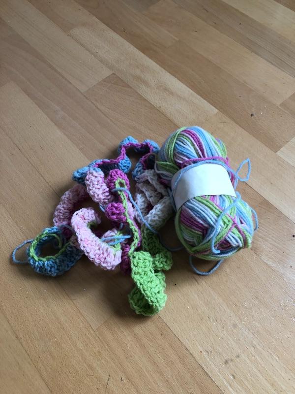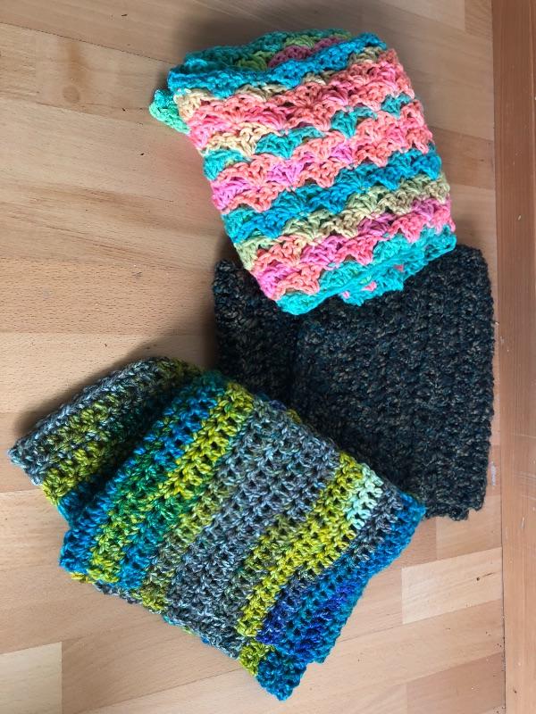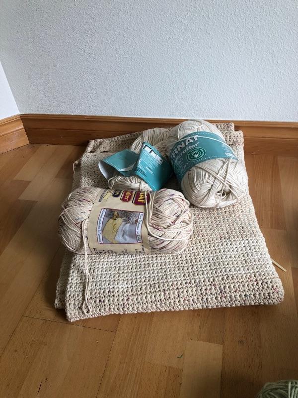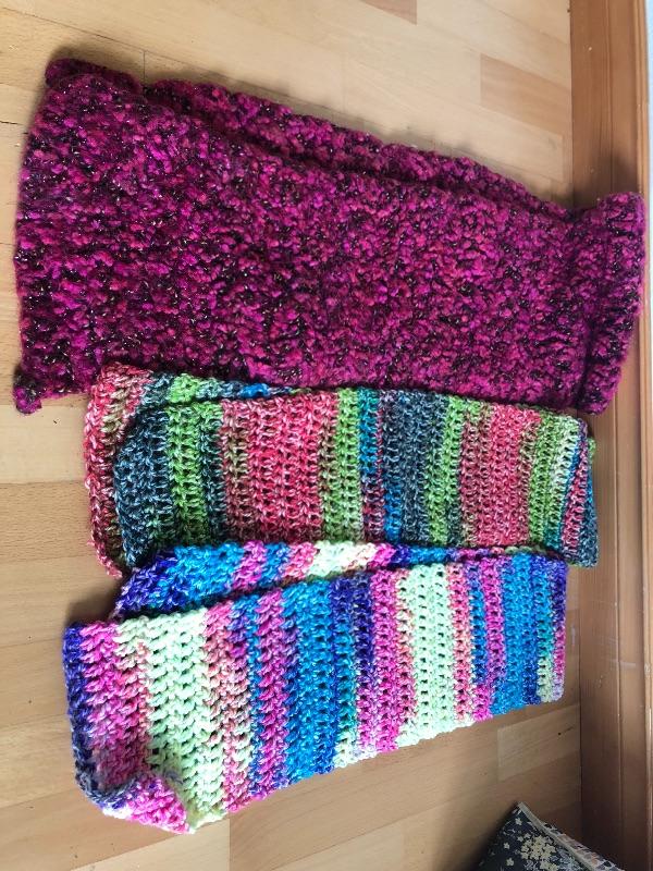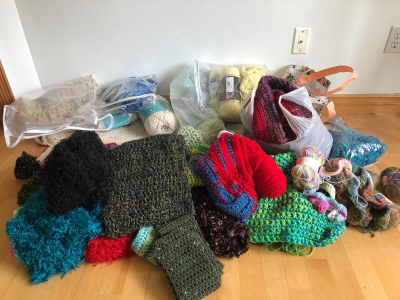 These are mostly unfinished blankets, lots of unfinished scarves too. Yarn included to finish it yourself.