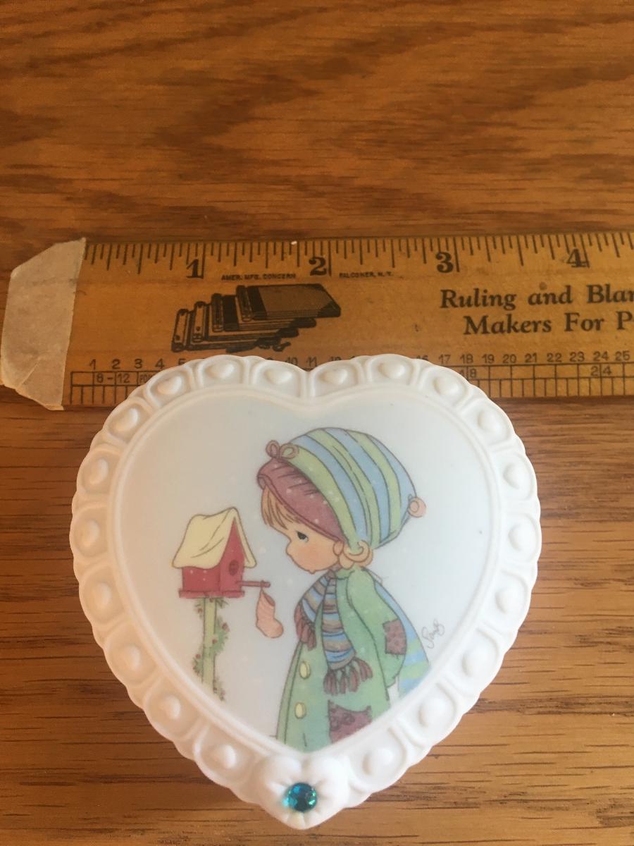 Precious Moments Trinket Box for the month of December. Cute little saying on the back of the heart.