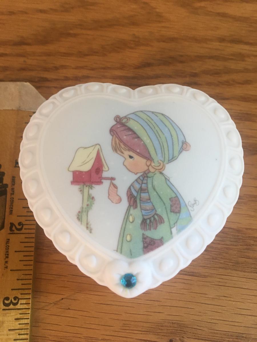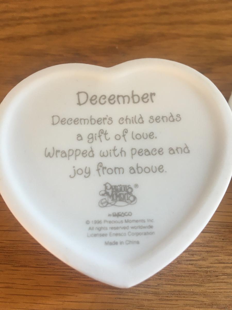 Precious Moments Trinket Box for the month of December. Cute little saying on the back of the heart.