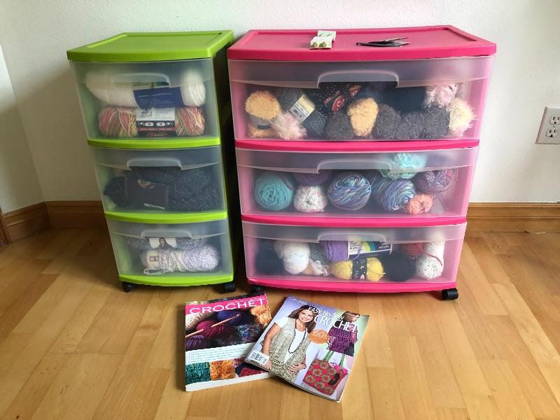091: One large Rolling Drawer Bin and Other Full of Yarn