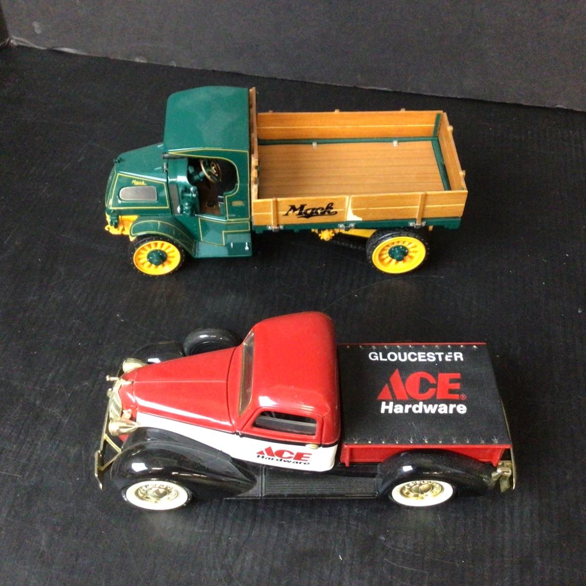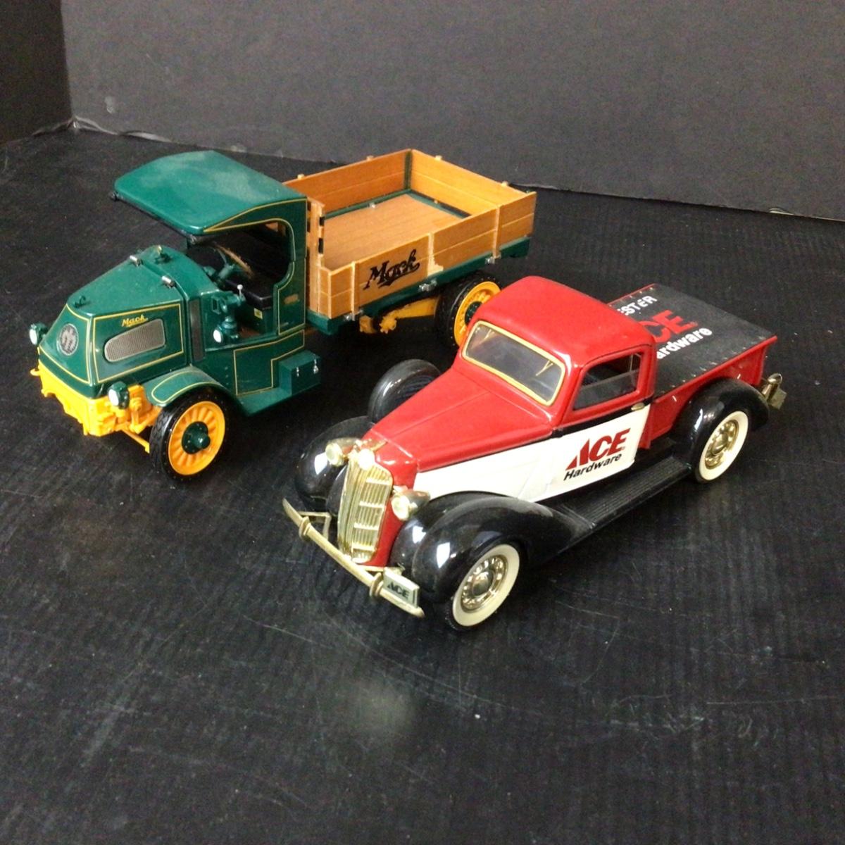 1:24 scale, die cast & plastic, Ace hardware is 1936 by Liberty classics, the Mack truck is 1916.