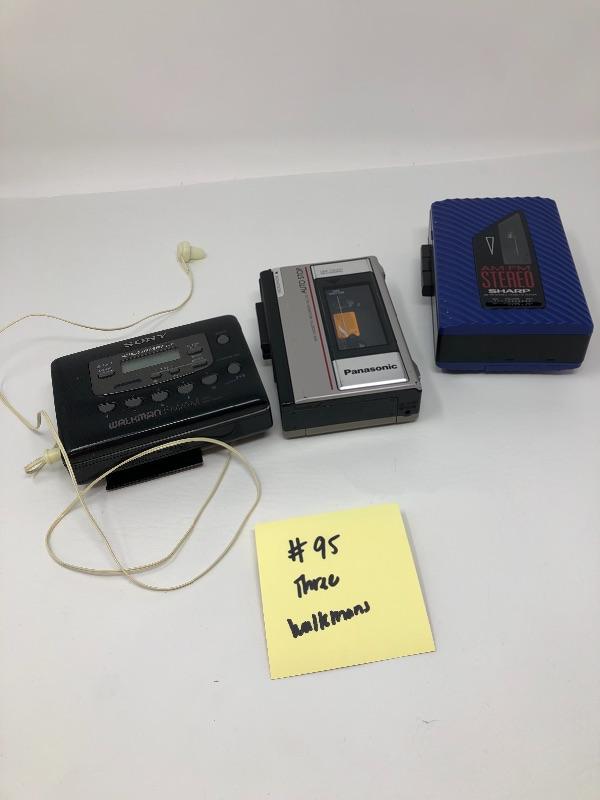 Vintage Sony Walkman, Panasonic and Sharp tape decks. Did not test.