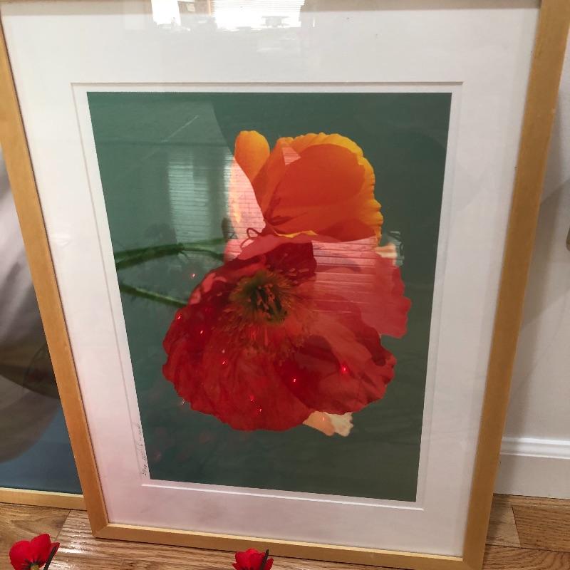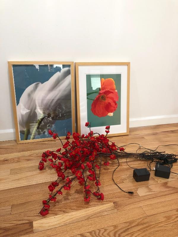 Orange Flower is signed and numbered. The white flower is not signed. Two lighted floral strands. Both work!