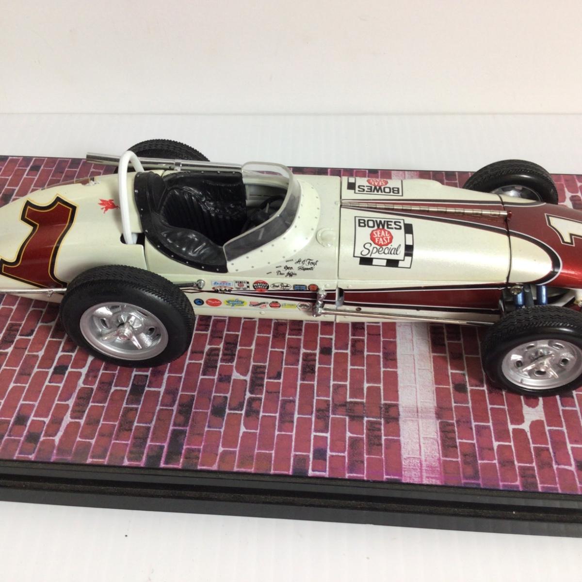The race car is 1:18 scale, Indy 500 winner 1961.