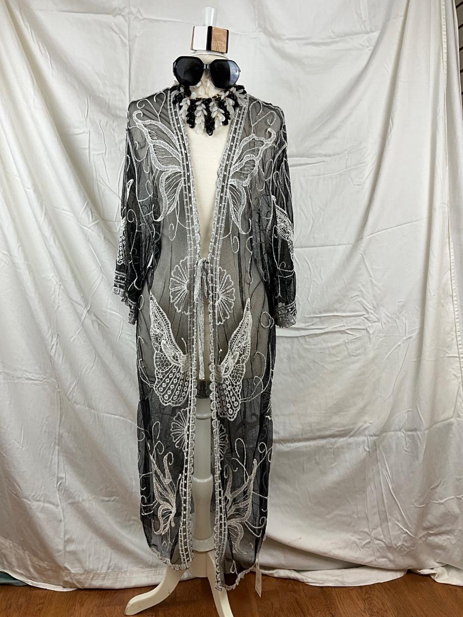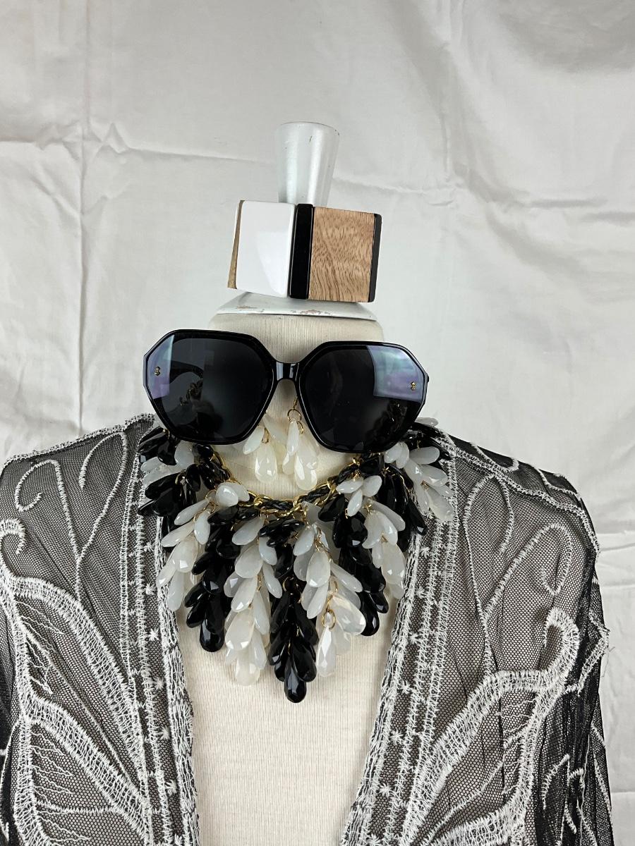097 Black and White Lace Coverup with Statement Necklace, Bracelet and Sunglasses