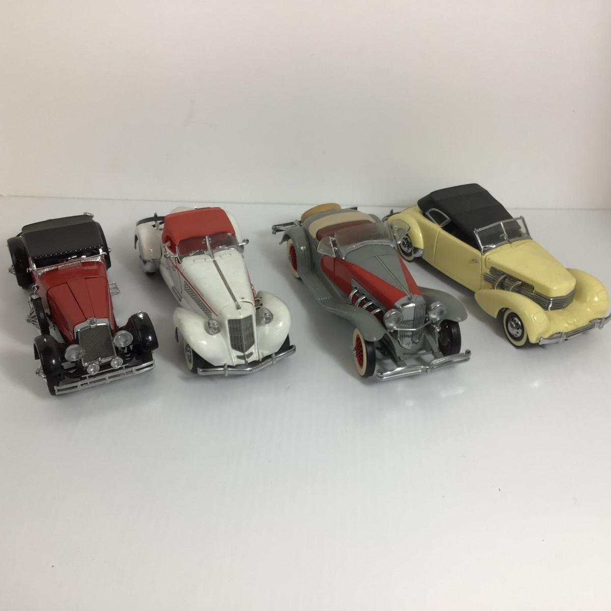 There are 4 cars in the lot, 1:24 scale, die cast models, Duesenburg & Phaeton Coupes. All cars are being sold as is as found.