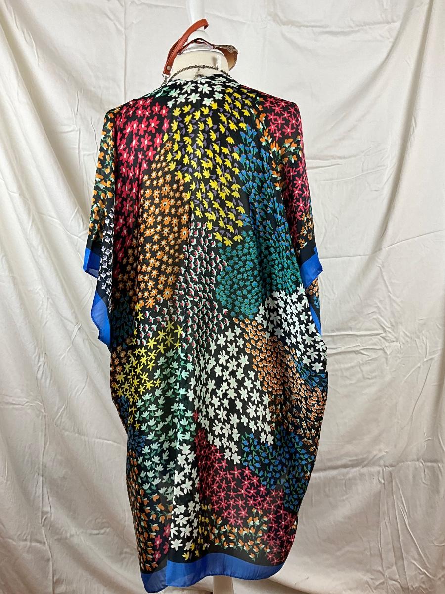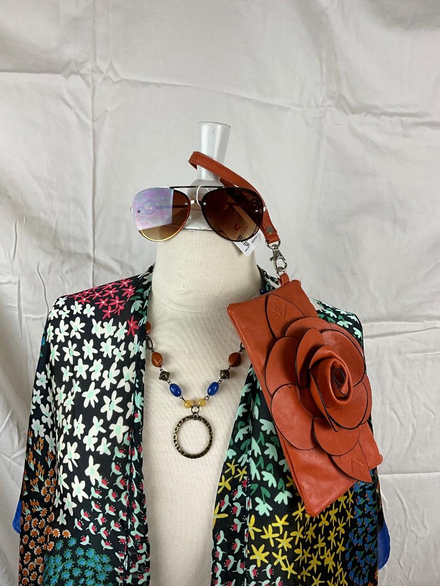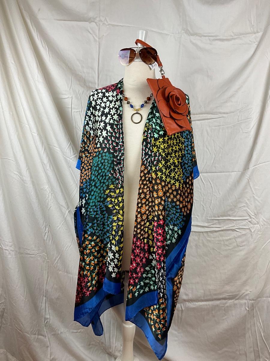 099 Multi Colored Floral Shawl with Flower Clutch, Necklace, Sunglasses