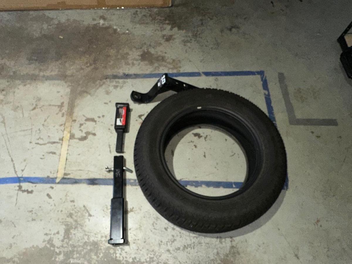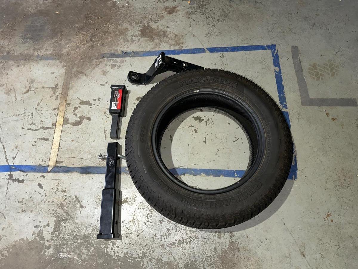 1 1/4" - 2" HITCH ADAPTER, 1 YOKOHAMA 225/65R17 TIRE AND A HITCH