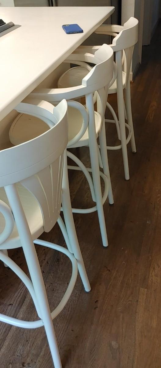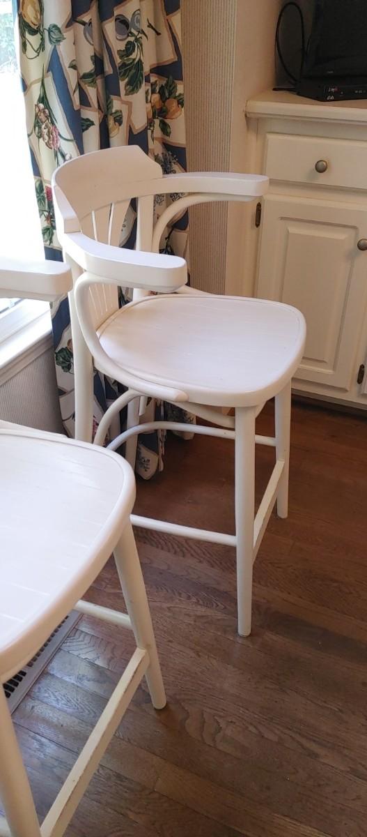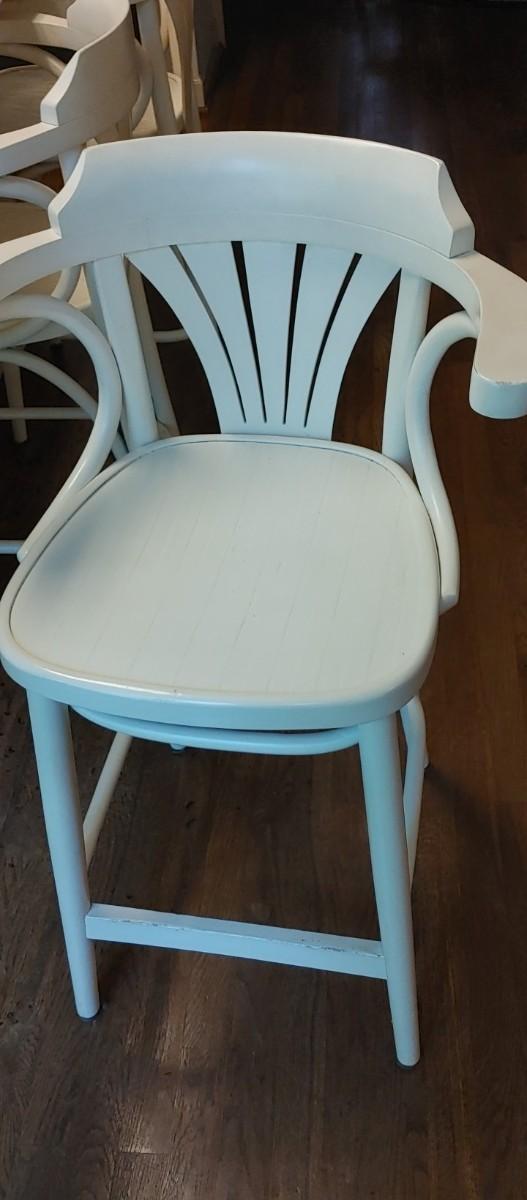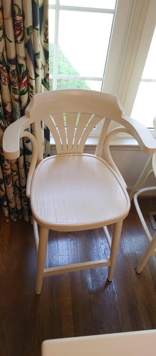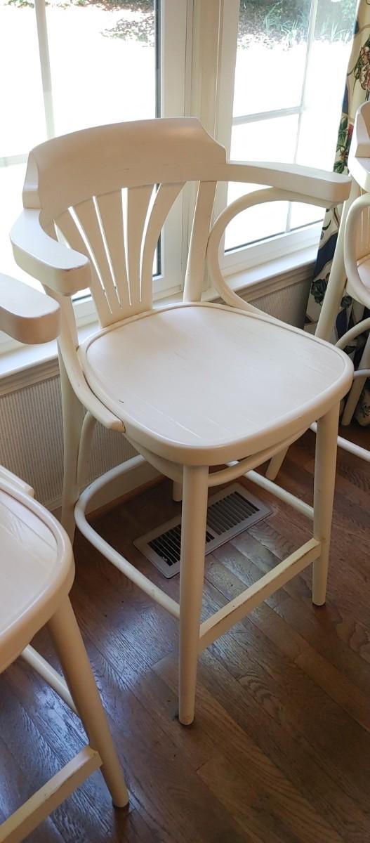 Is there a high-quality all wooden White bar stools with arms & bent wood accents. Heavy high quality. Excellent condition