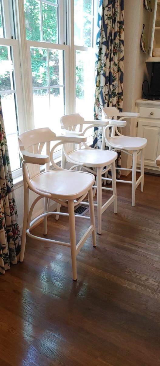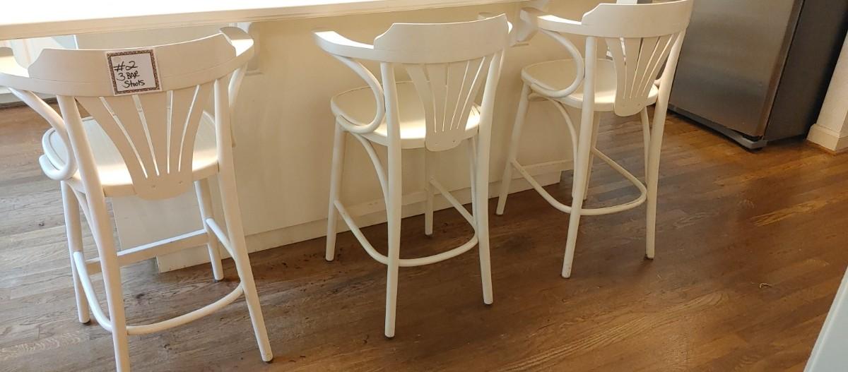 #2 (3) Wonderful White Wooden Bar Stools