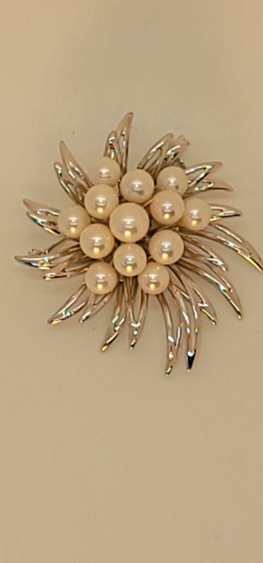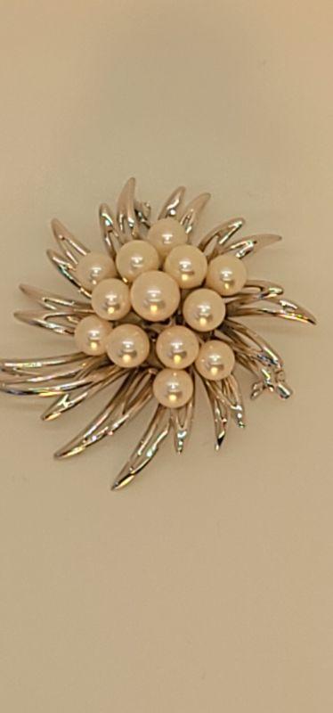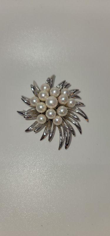 PJ5** New! Pristine sterling Pearl brooch/pendant by "foreign" designer.
