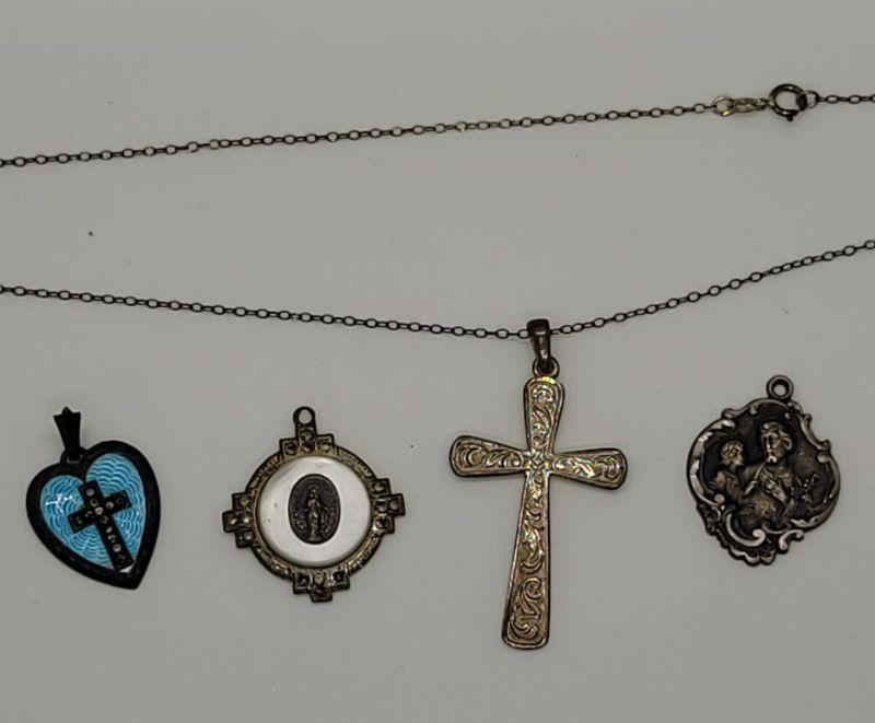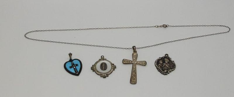 PJ6** Religious 925 silver pendant lot with 18 inch chain,