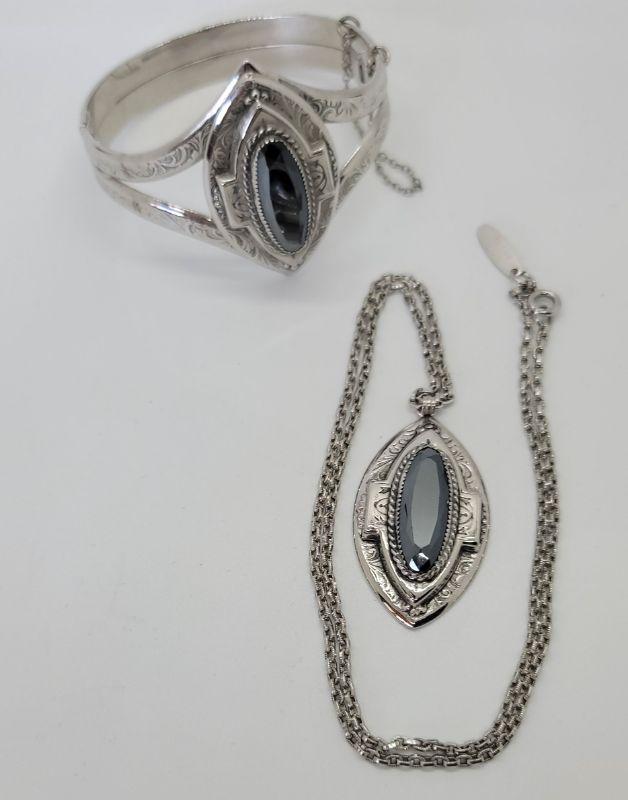 PJ44** Whiting & Davis necklace and bracelet set - Hematite.