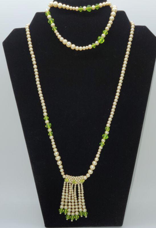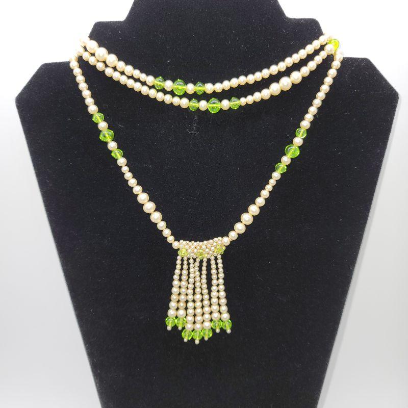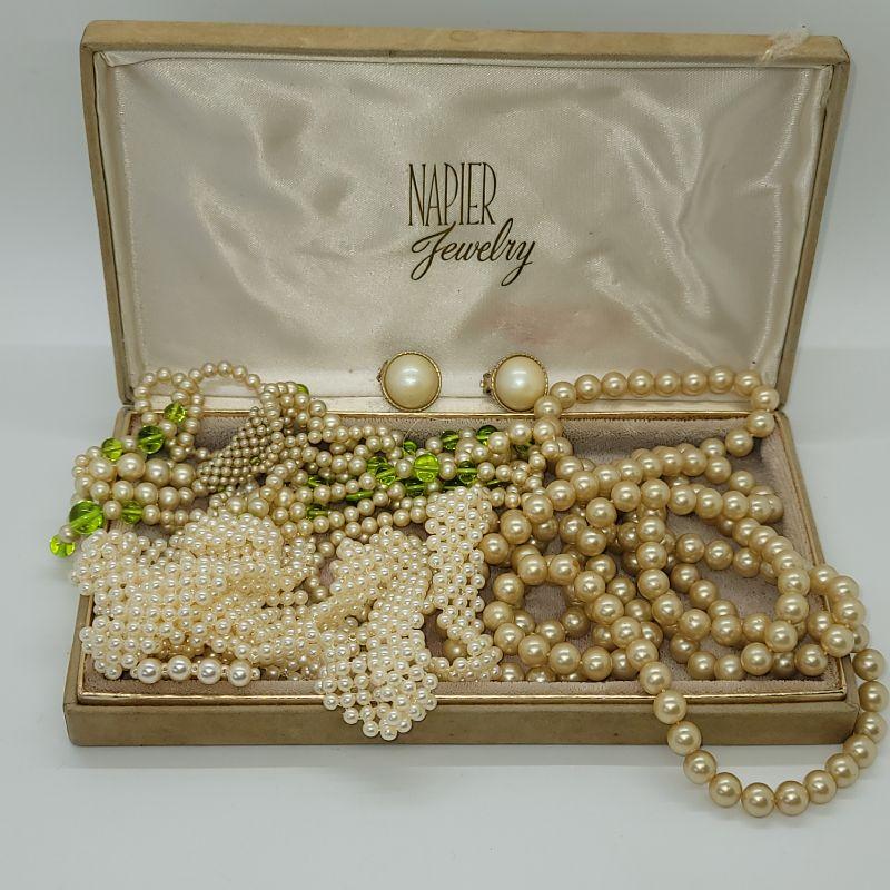 PJ54** Costume jewelry lot. 24-32” long. One pair of Nina Ricci clip-on earrings.