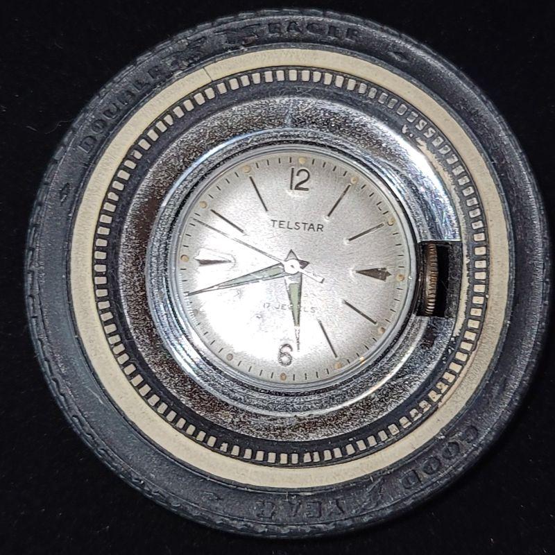 PJ60** Telstar, windup watch in a Goodyear tire, promo piece. Swiss made in Ireland.