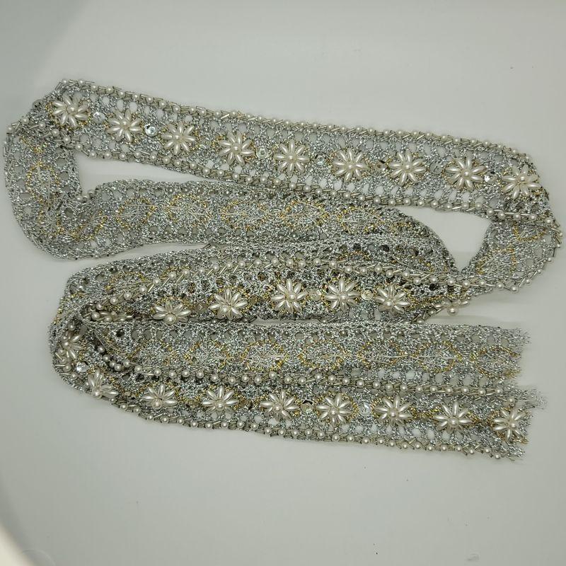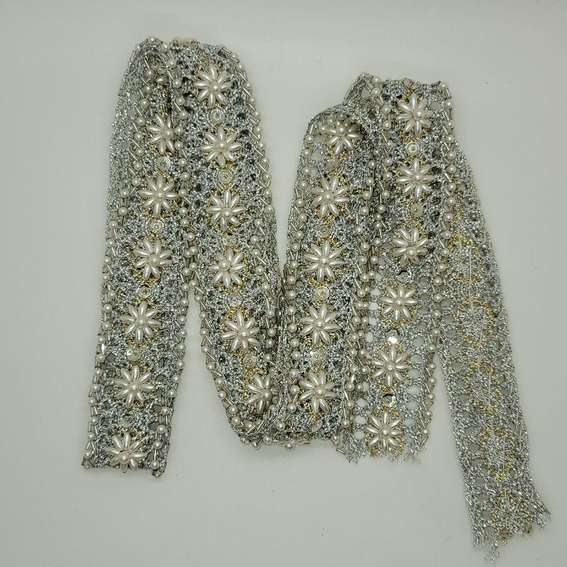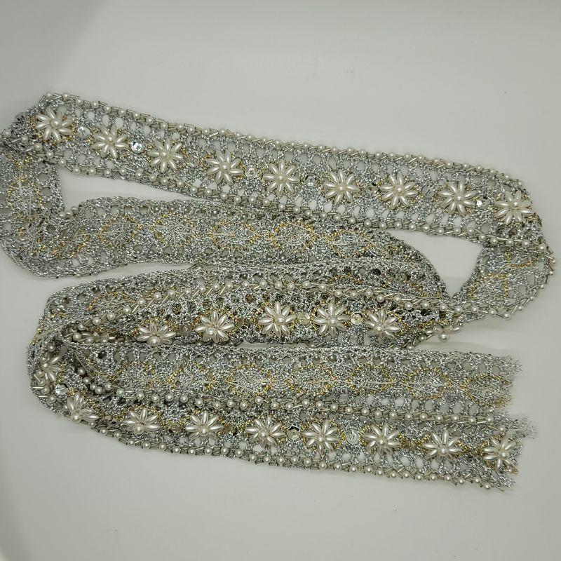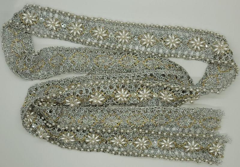 PJ61** 56” trim. Silver tone, pearls and sequins, gold threads too