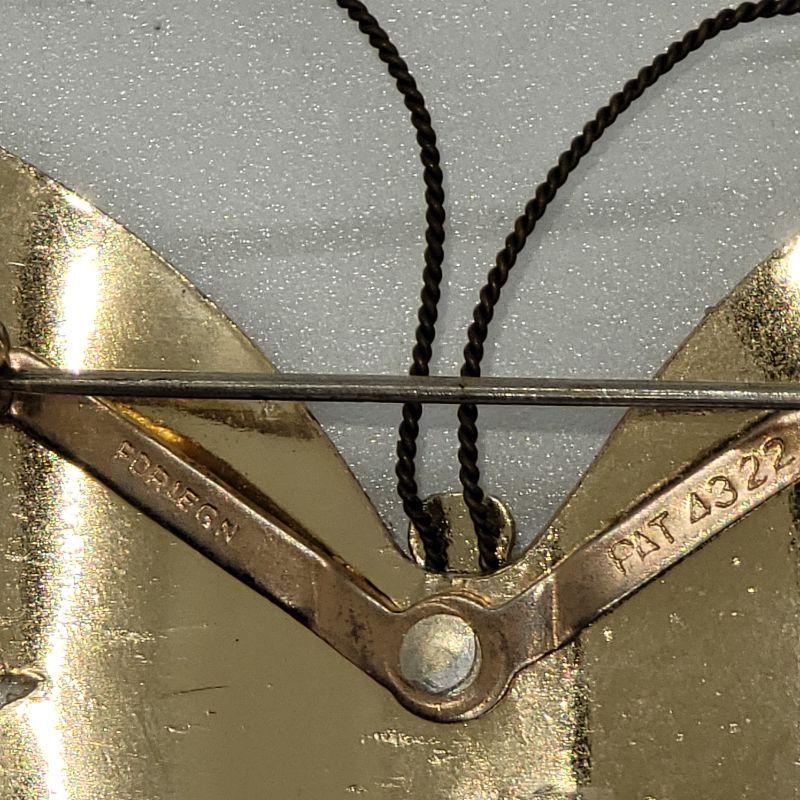 Pat. 4322. Vintage, sugar coated tin brooch signed Foreign 1960’s. Measurements pictured.