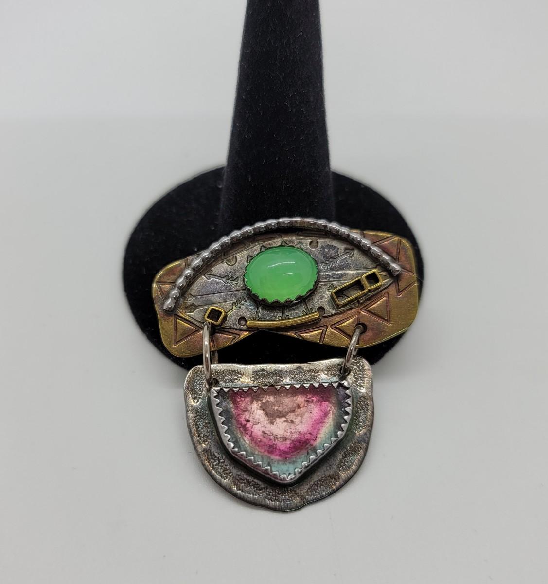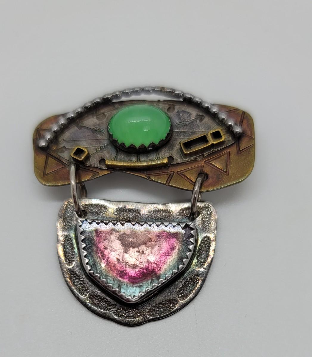Lot J46 - Pin with Crystaphase & Watermelon Tourmaline stones. Receipt of purchase enclosed.