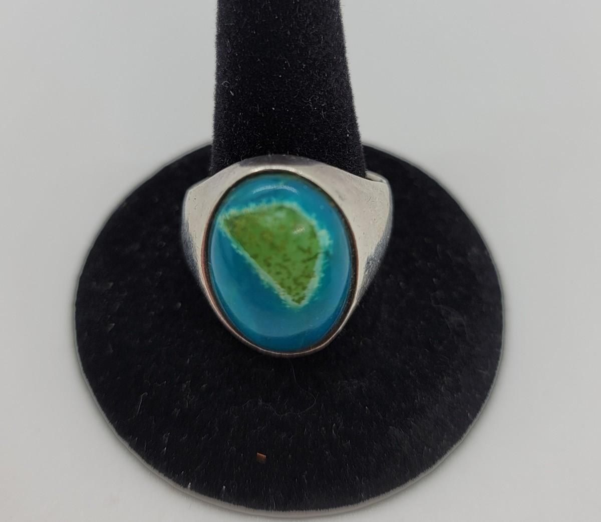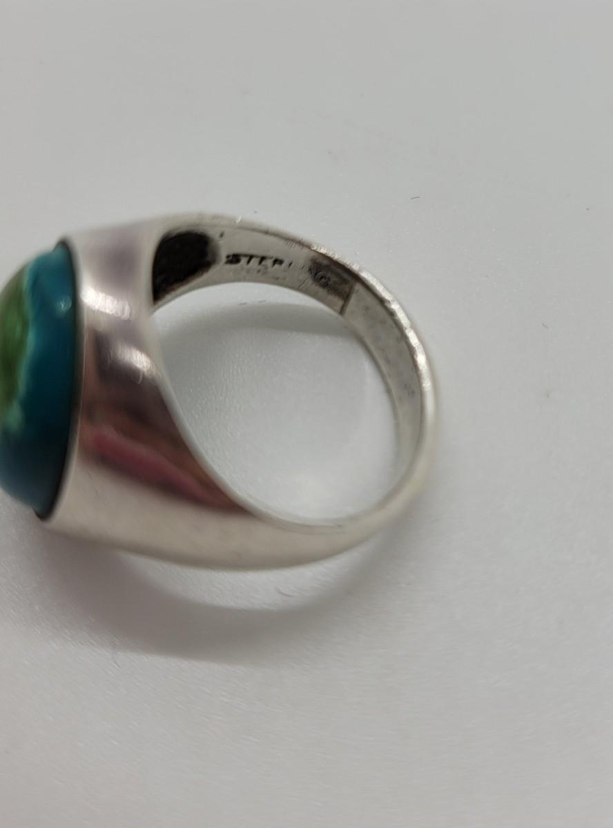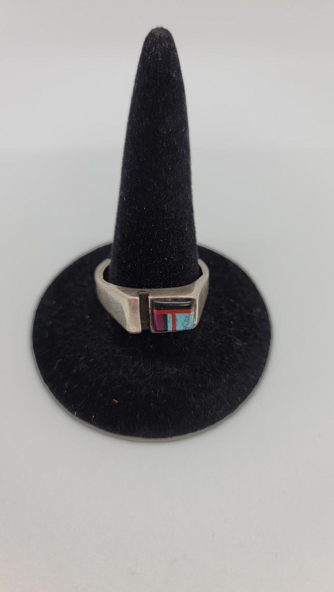 Two sterling silver rings. 1 - multi-stone 1 -turquoise. Multi-stone size 8.5”. Turqoise size 8 1/4’.