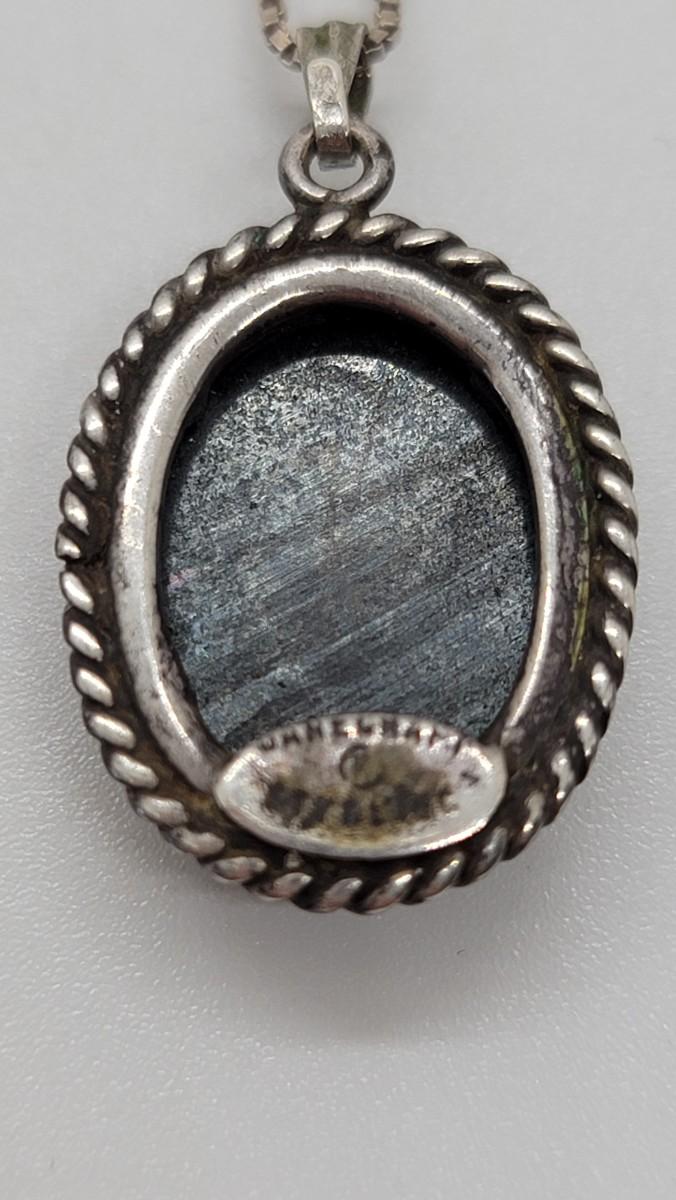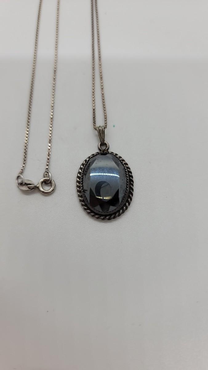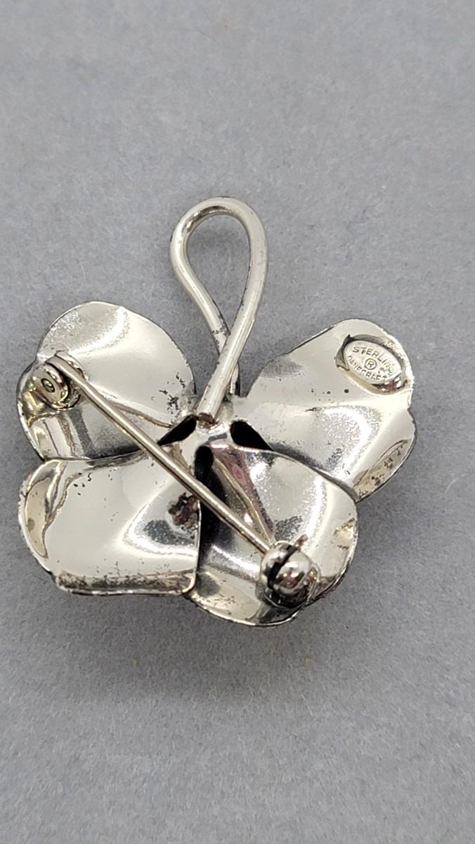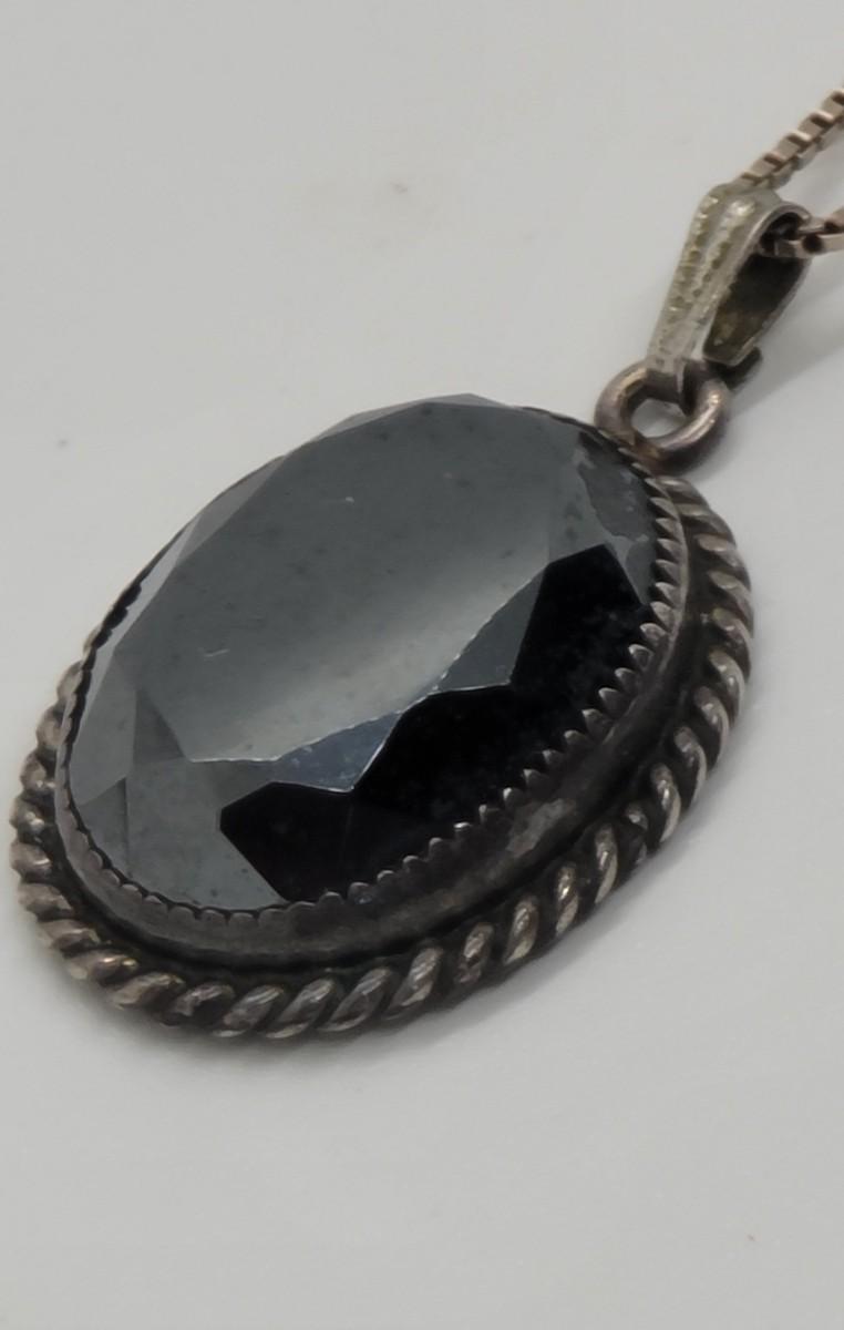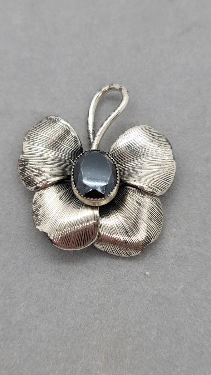 Danecraft sterling Hematite necklace and 4-leaf, clover design with hematite center pendant/brooch on a 24” sterling chain.