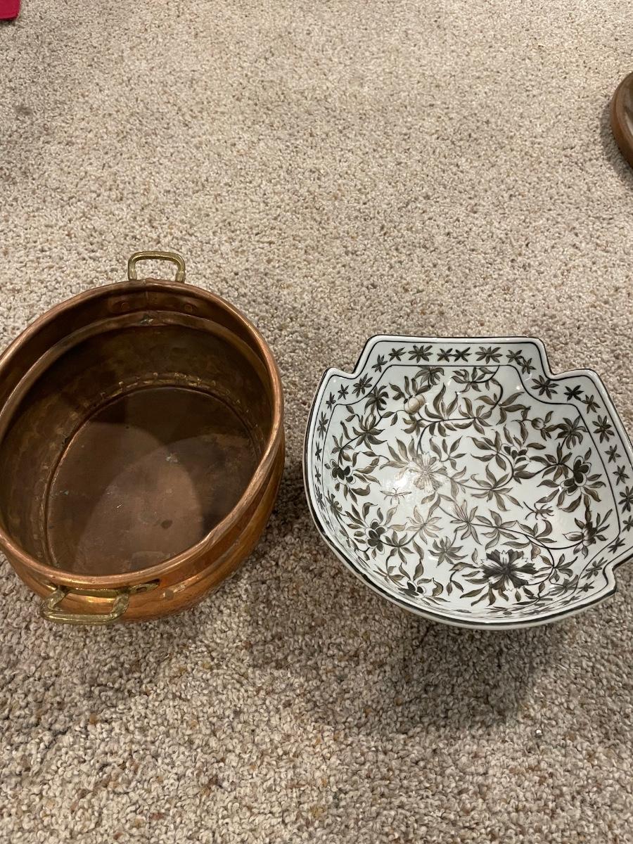 1 Asian bowl and oval copper pot with handles