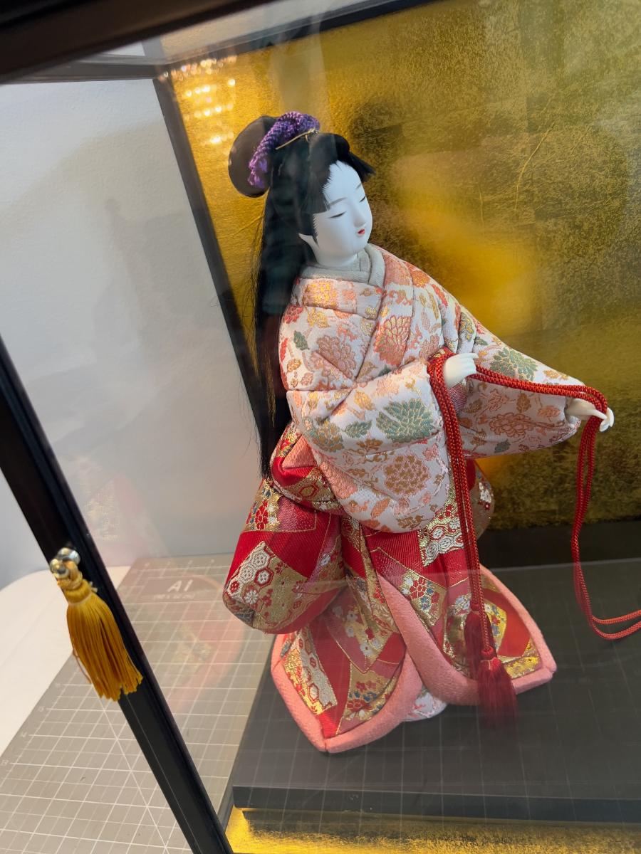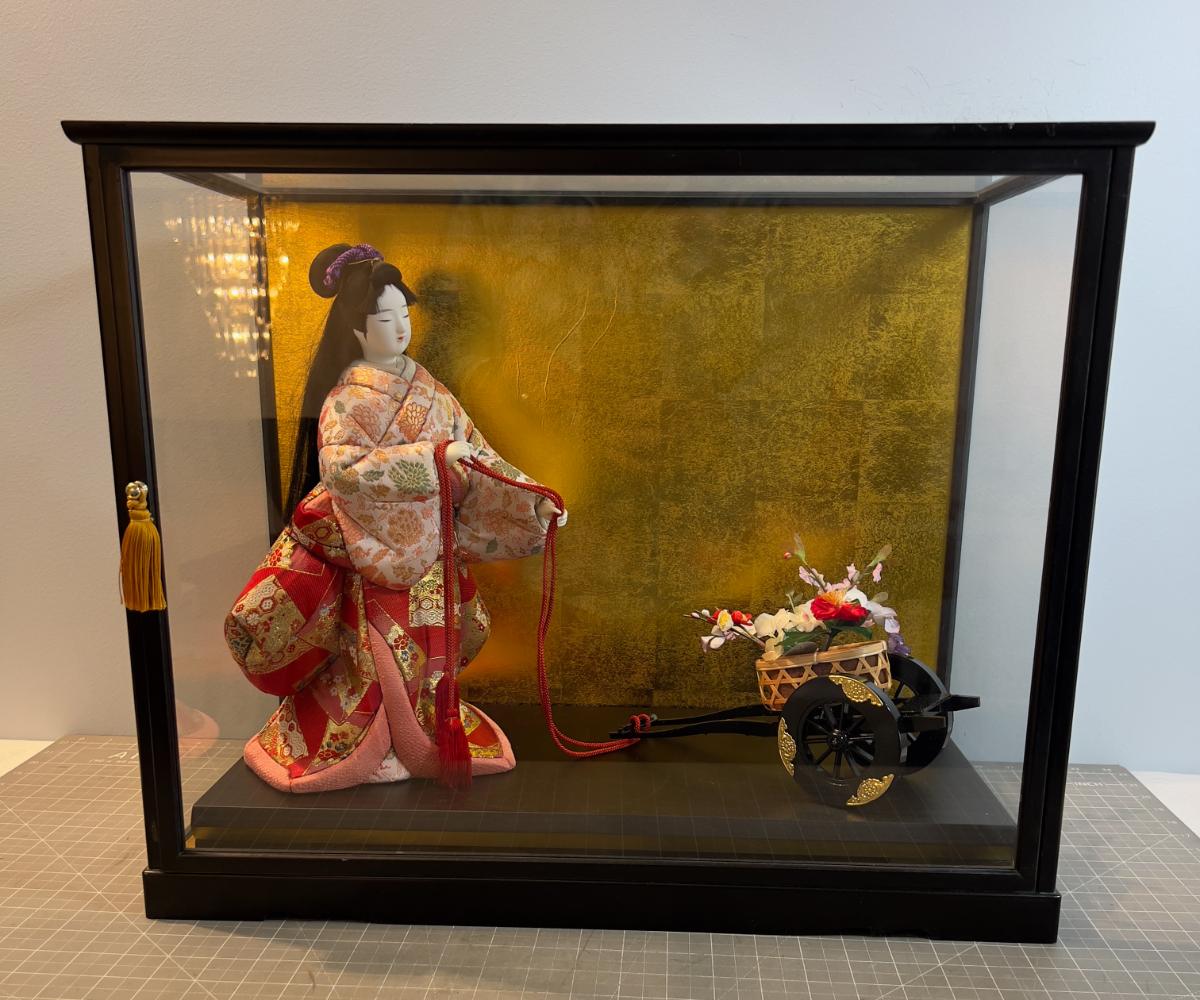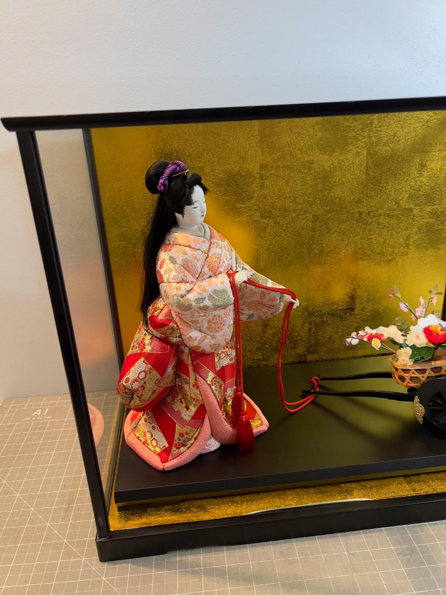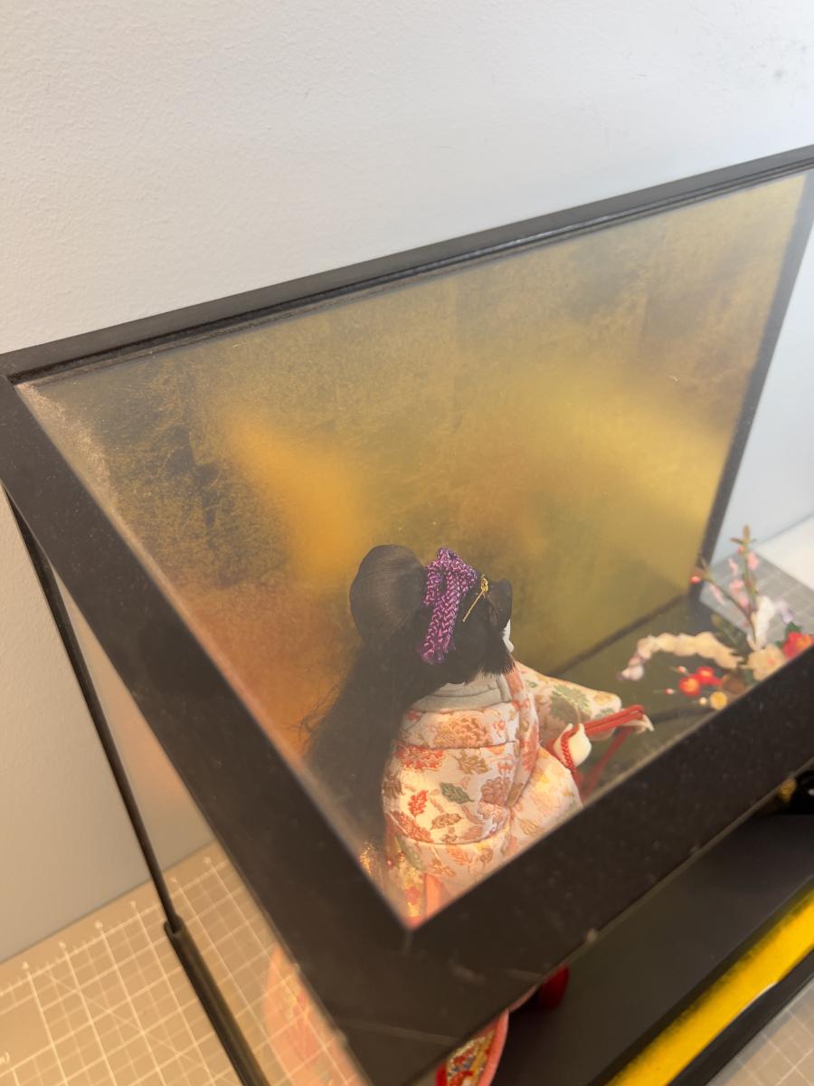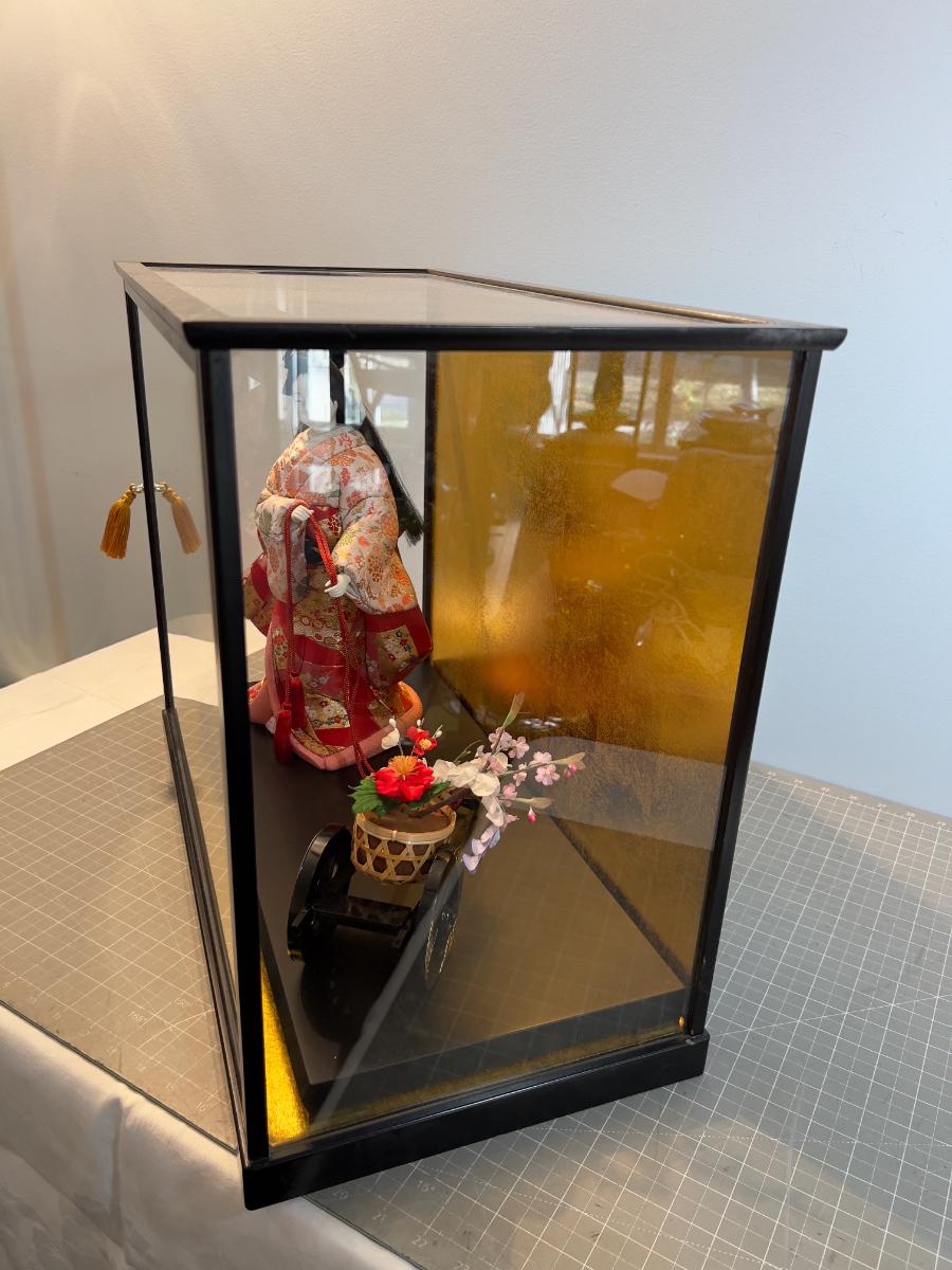 1 Asian Porcelain Gisha Figurine Under Glass  - From Japan