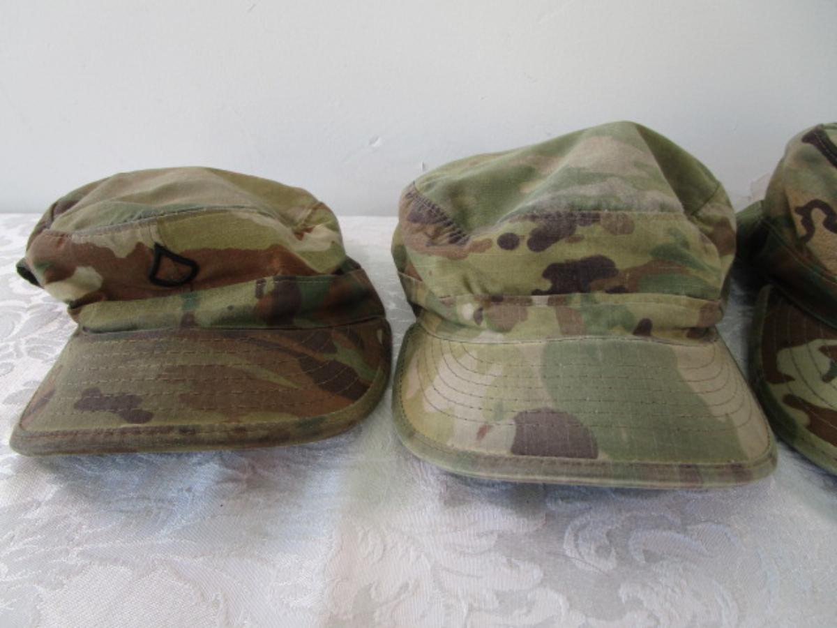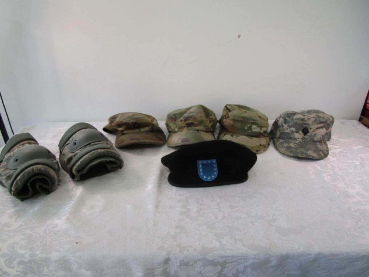1 Beret, 4 Cammo ball caps, set of Cammo knee pads