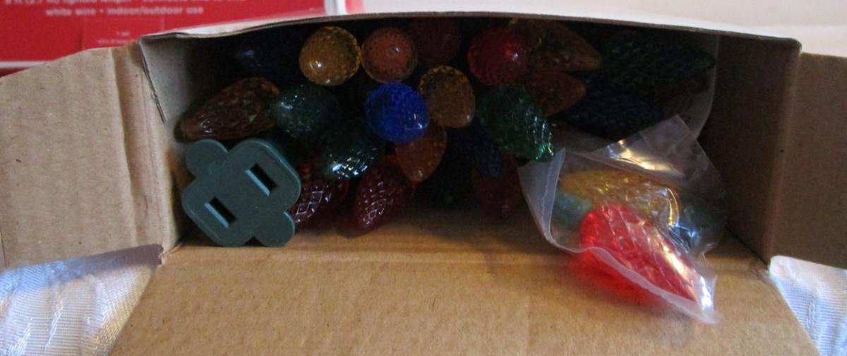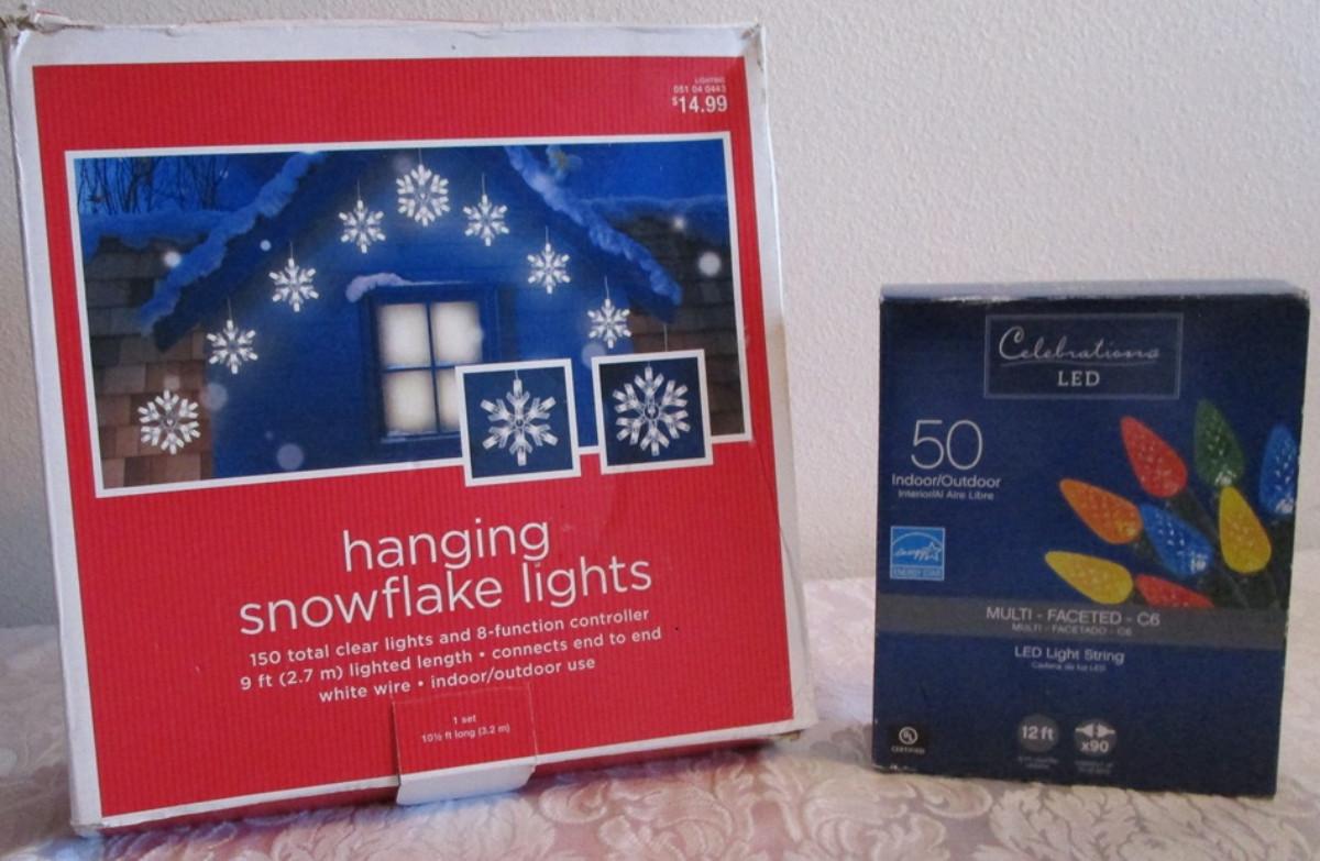 1 box Hanging Snowflake Lights, 1 box 50 faceted C6 lights