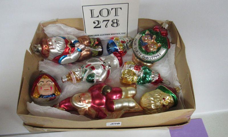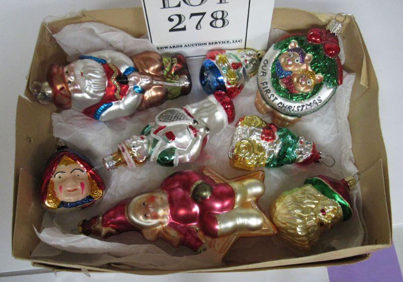 1 Box of Figural Glass Christmas Ornaments 1980-2000