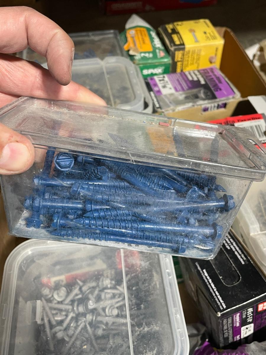 1 Box of misc. screws, anchor bolts over a dozen boxes/bags