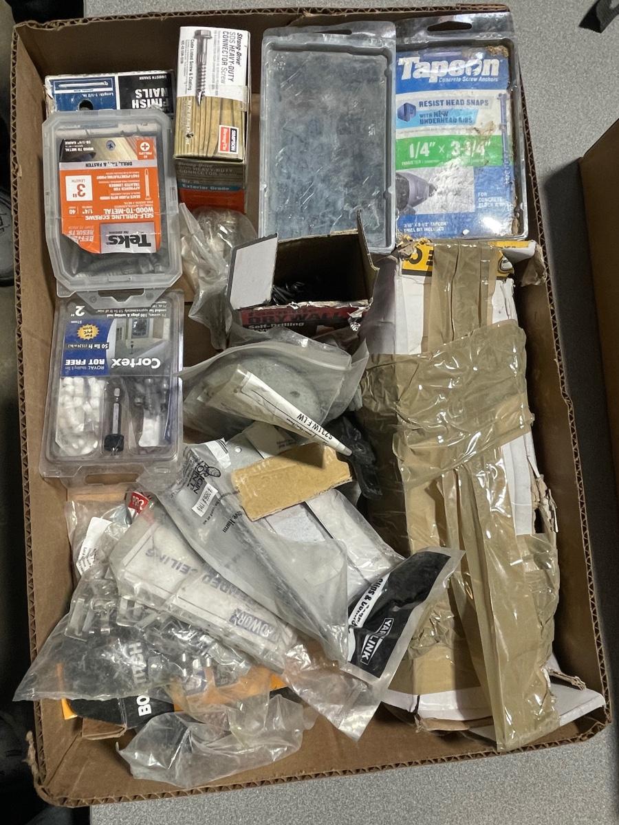 1 Box of Many smaller boxes of Misc. Screws, anchor bolts, etc.