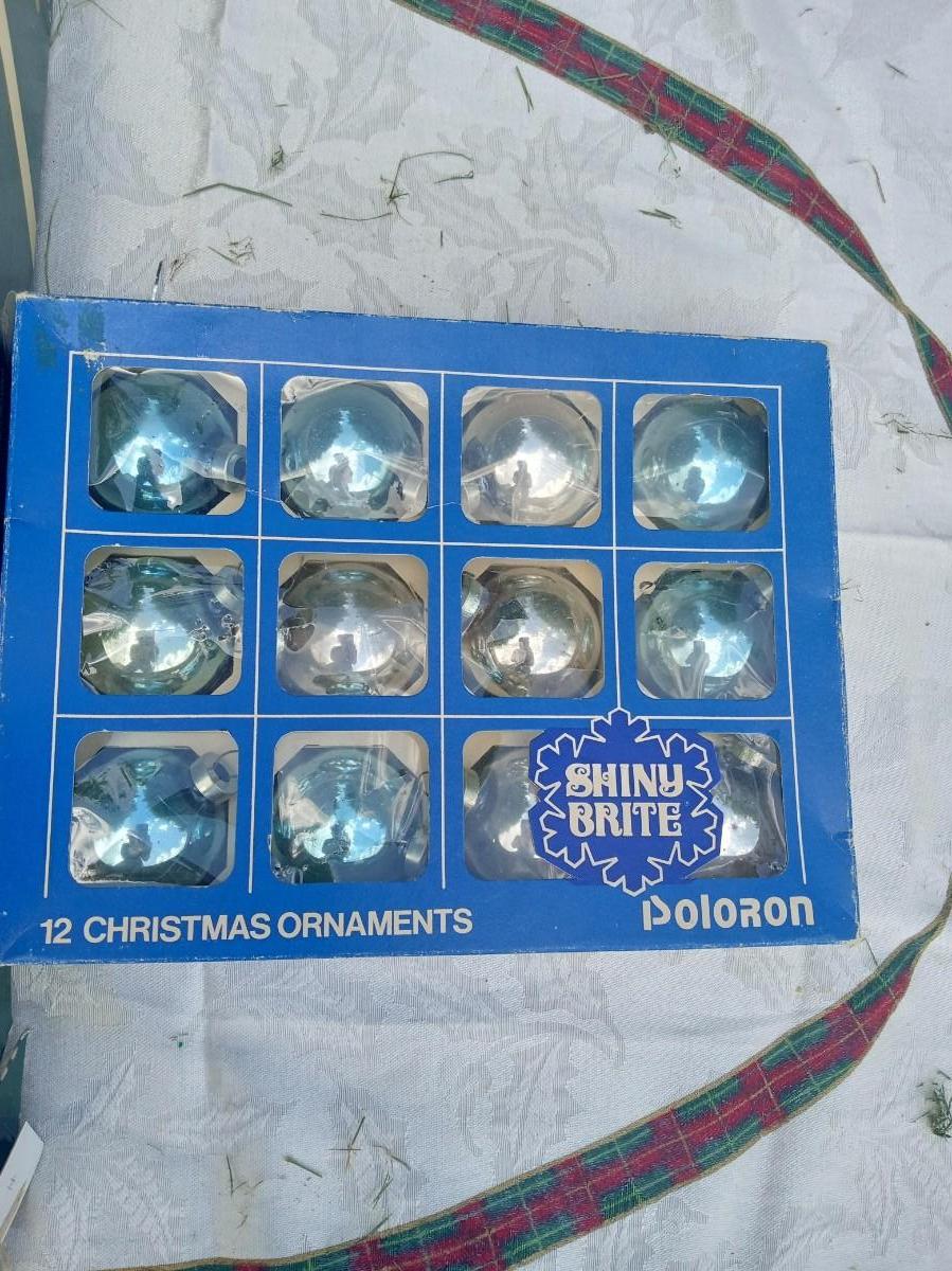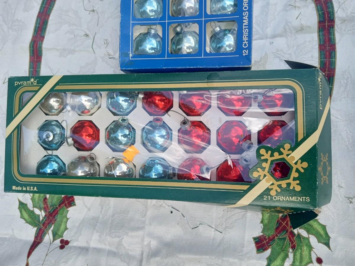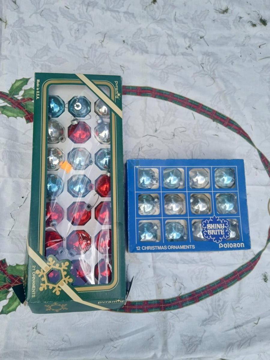 1 BOX OF SHINY BRITE AND ANOTHER BOX OF GLASS ORNAMENTS