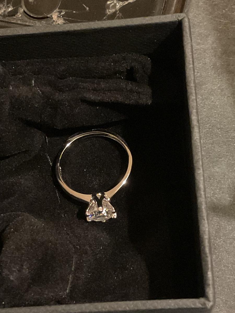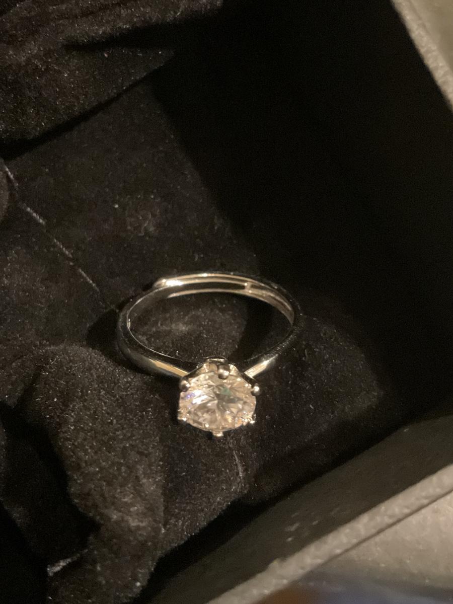 1 carat moissanite ring, on silver color band. Ring size is adjustable.