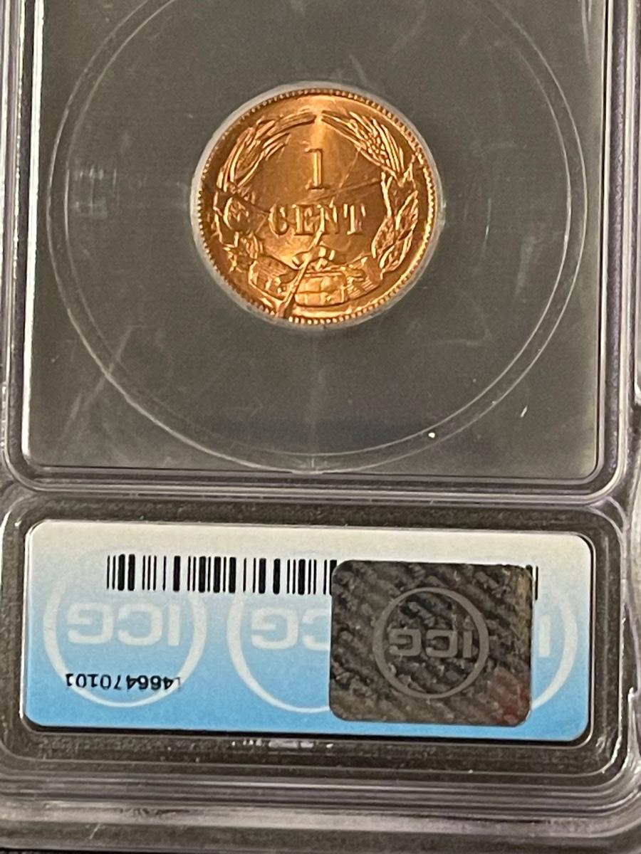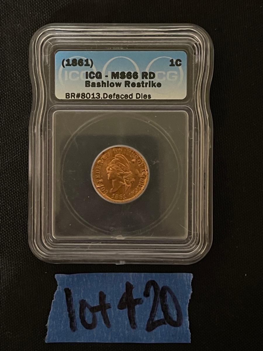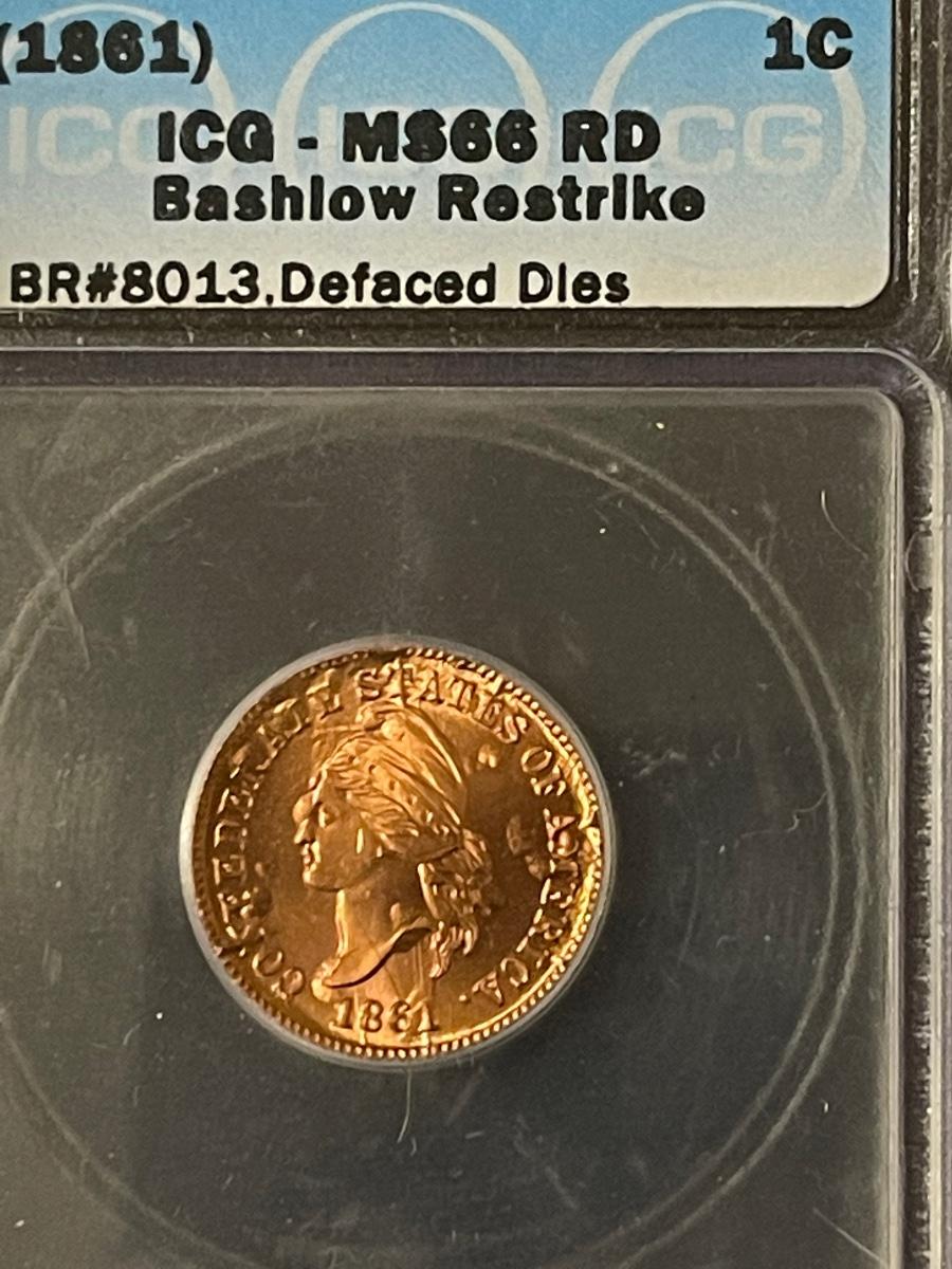1861 IGC Cert. MS66 Bashlow Restrike Defaced Dies 1 Cent