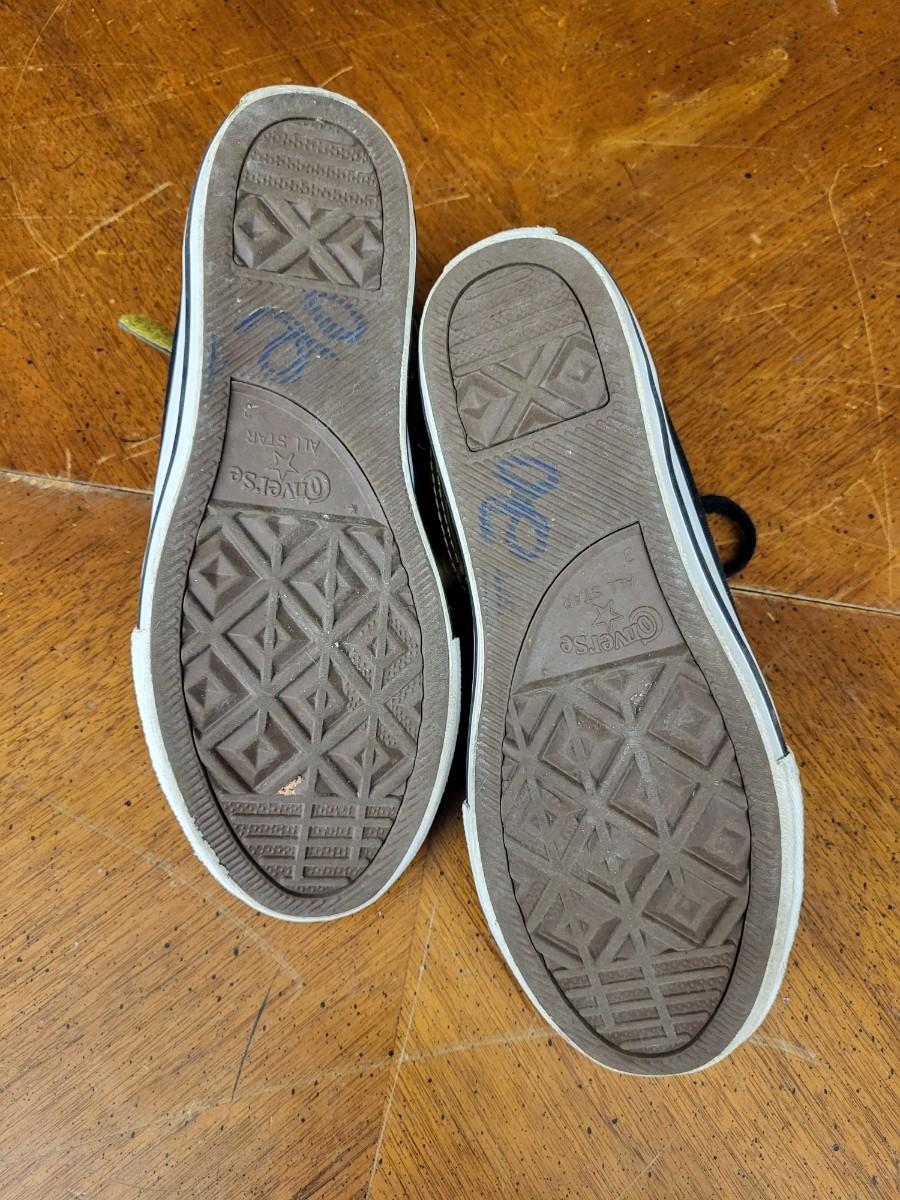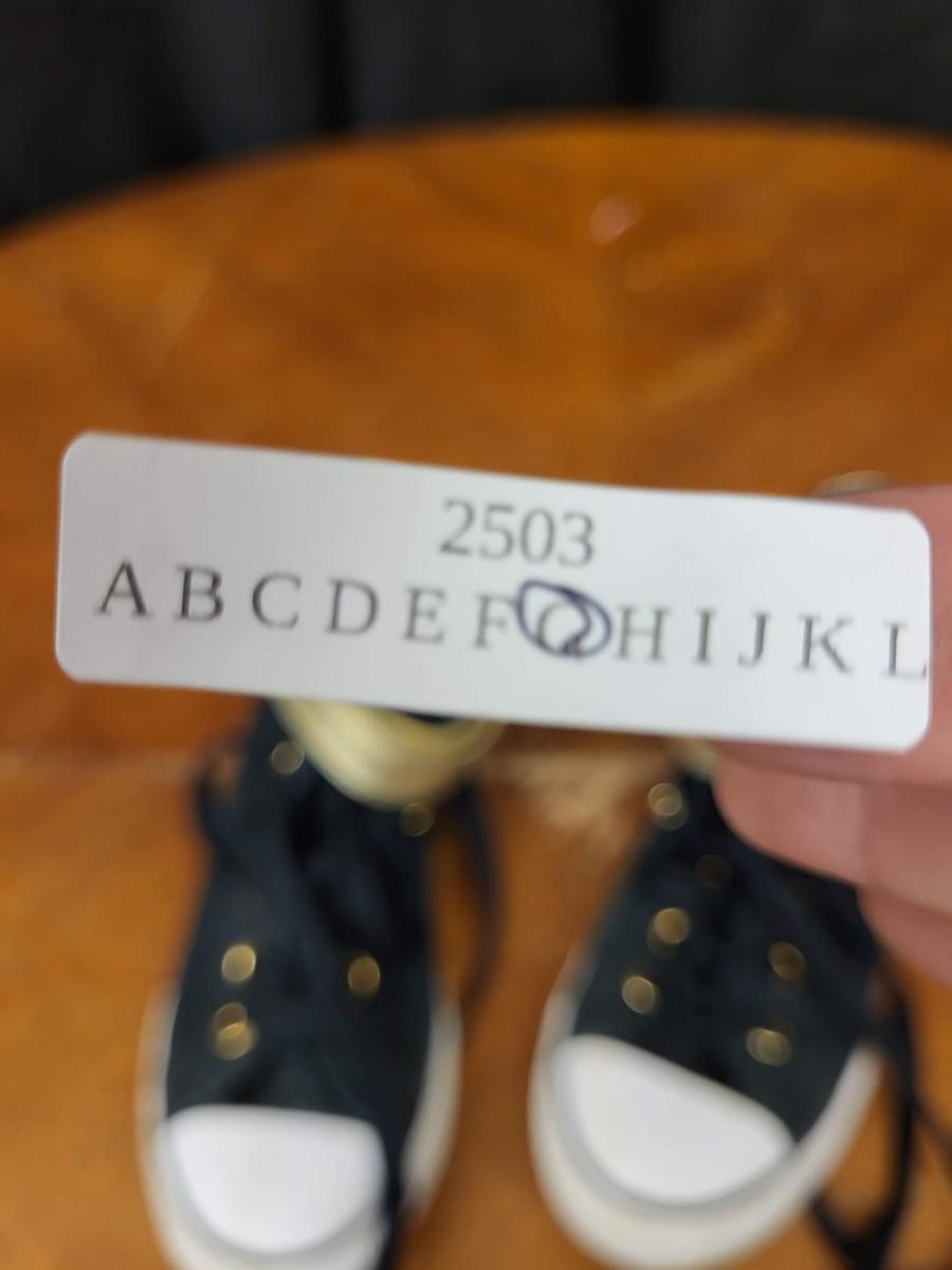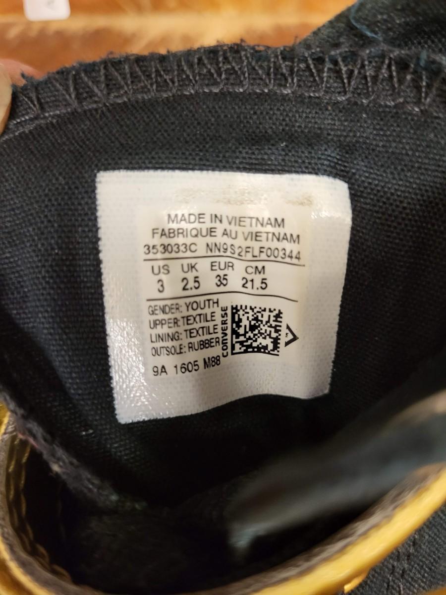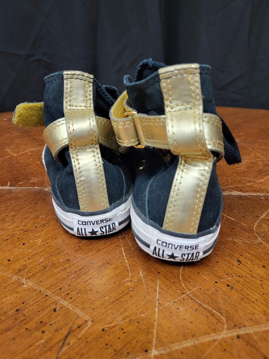Shoes:1 Converse Size 3 Black and gold hi top converse;