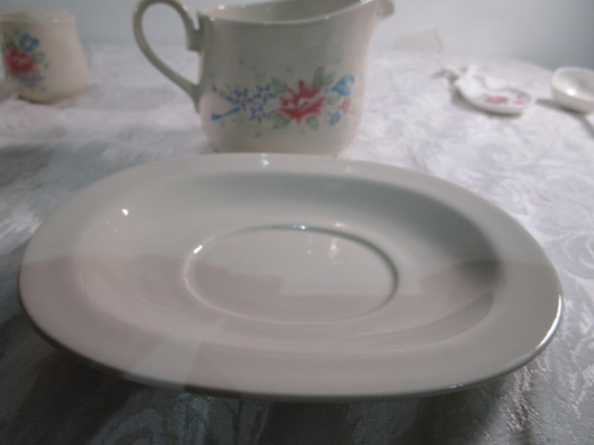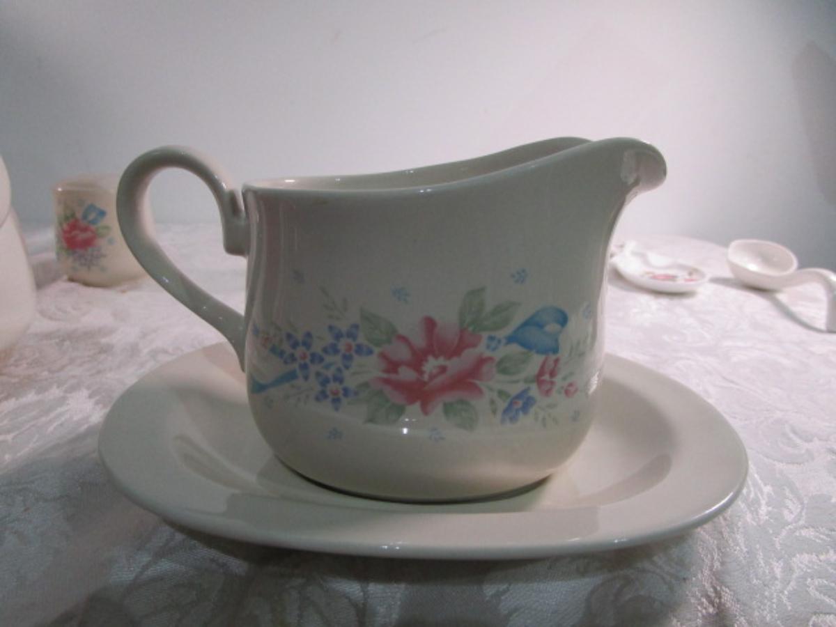 gravy boat is 5-1/4" x 4-3/4", plate is 7-3/4" x 5-3/4", pattern is Symphony