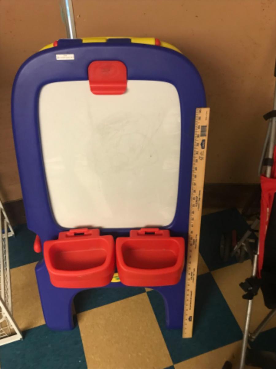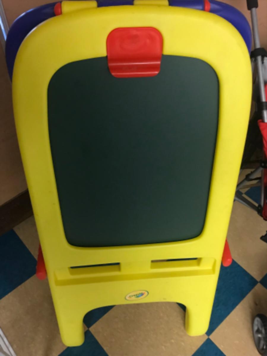 child toys:1- Crayola double sided, hard plastic, dry erase and chalkboard ;