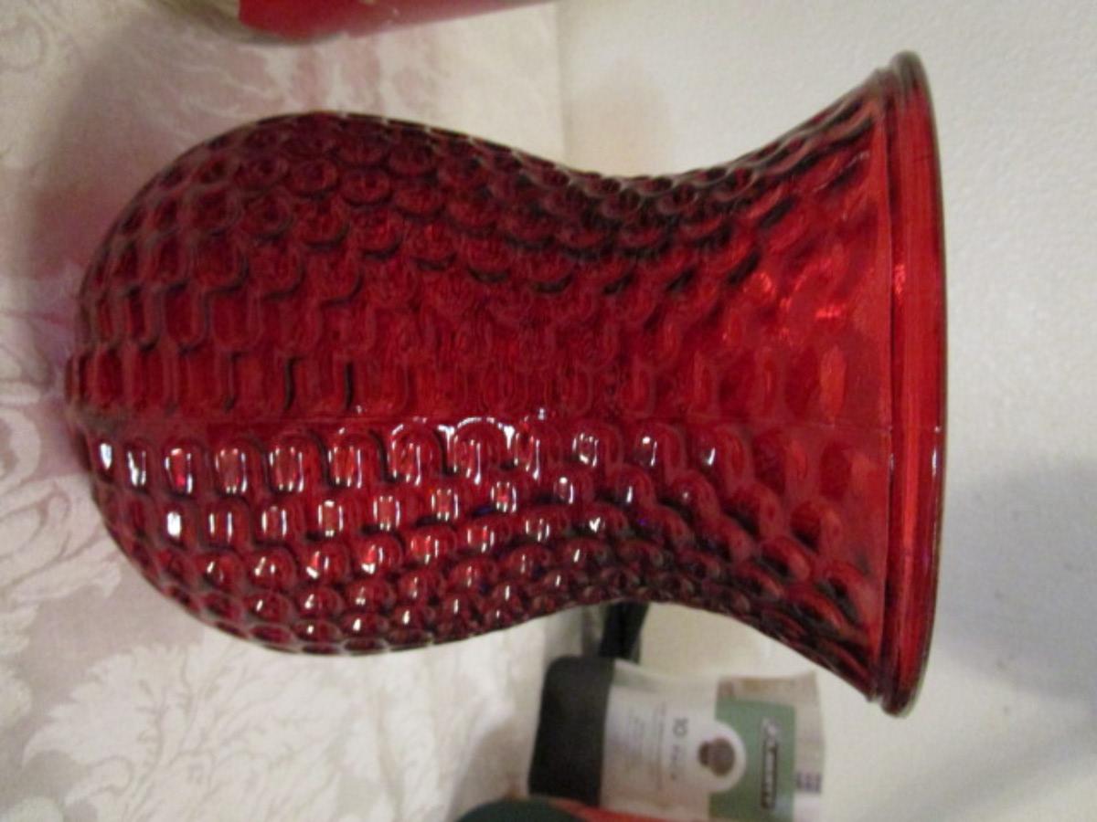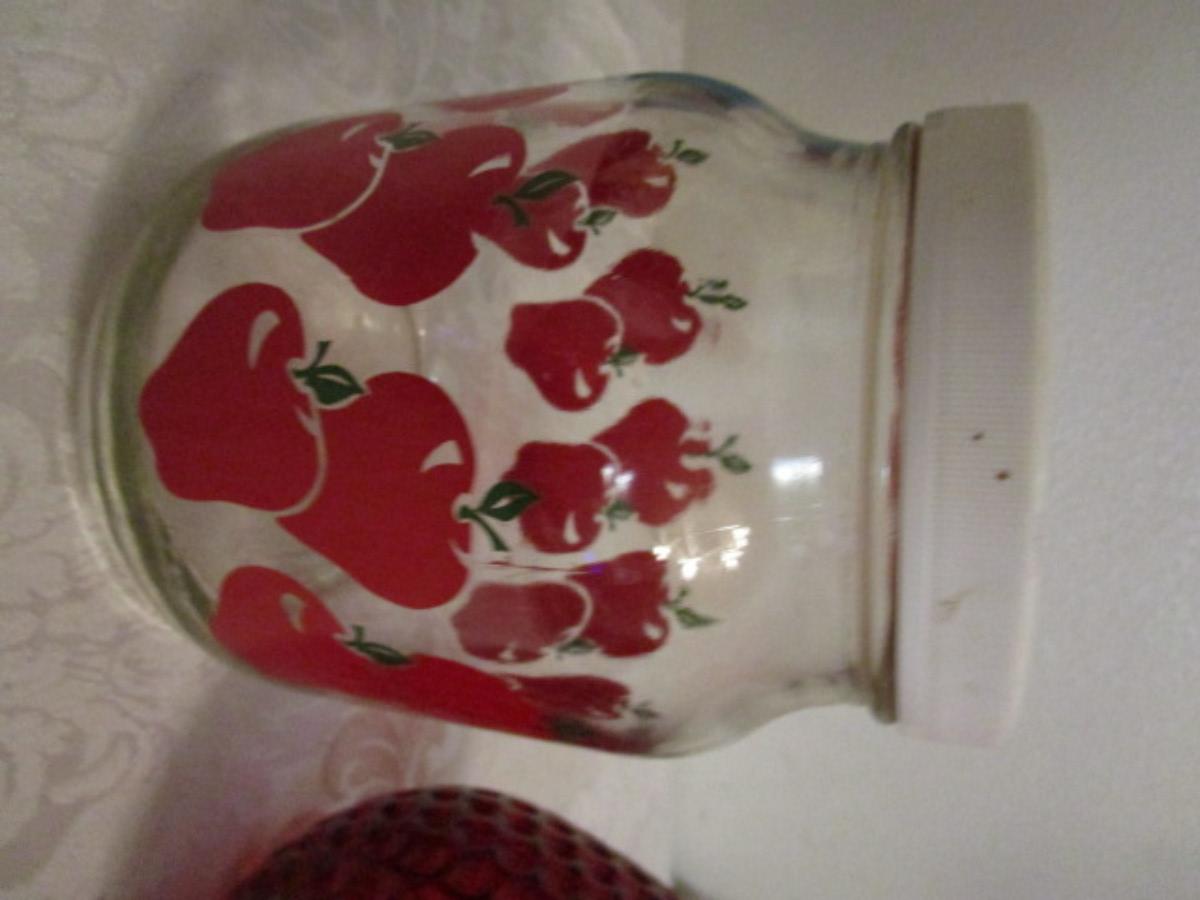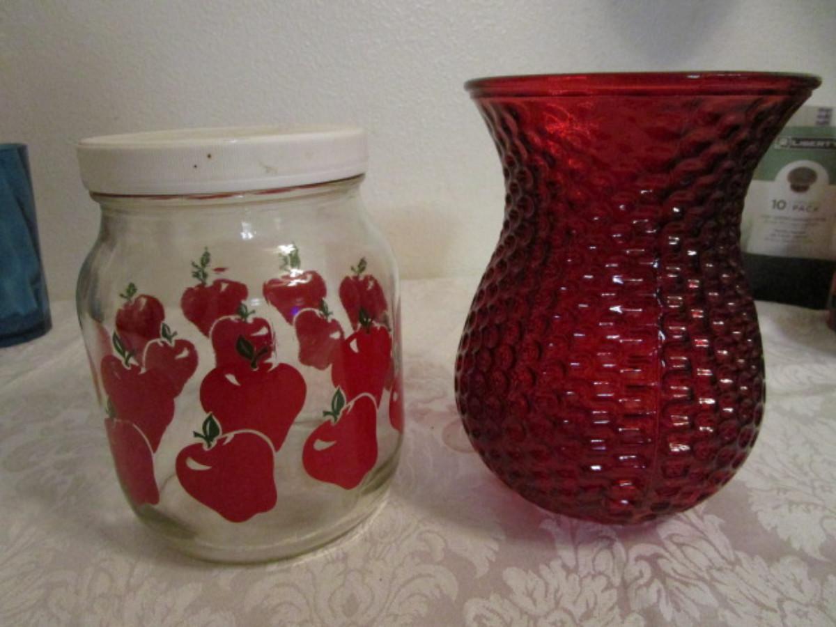 1 decorative 1/2 gallon glass jar with lid, 1 large red vase